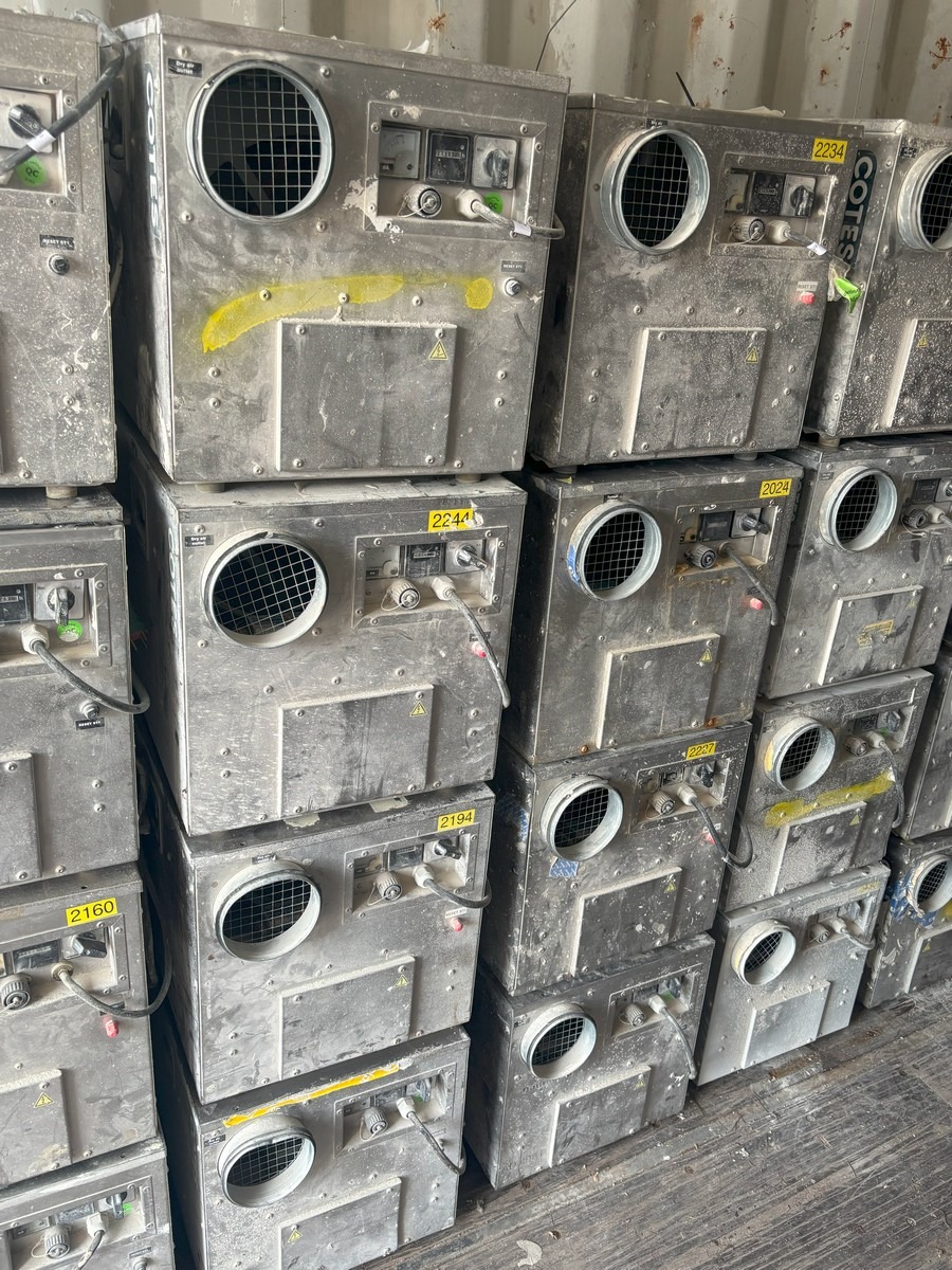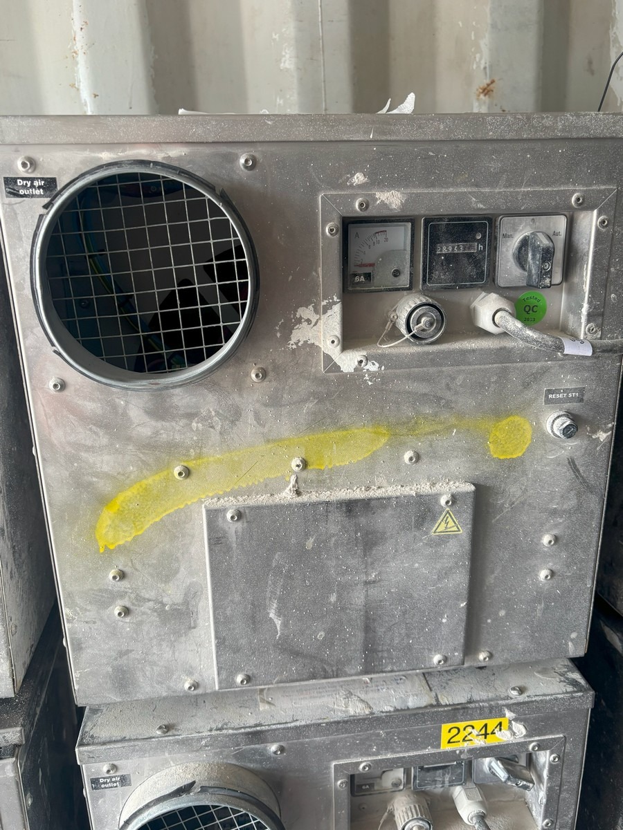 8 x Cotes industri adsorptionsaffugter model CR300B. KW heat: 1,38. KW total 1,52. KG 27, V 230, HZ 50. Måler: 43x40x47cm. Vejl. Ny pris ca. 17.500kr per stk. Kræver nok til service & evt. en gennemgang. Salg fra virksomhed