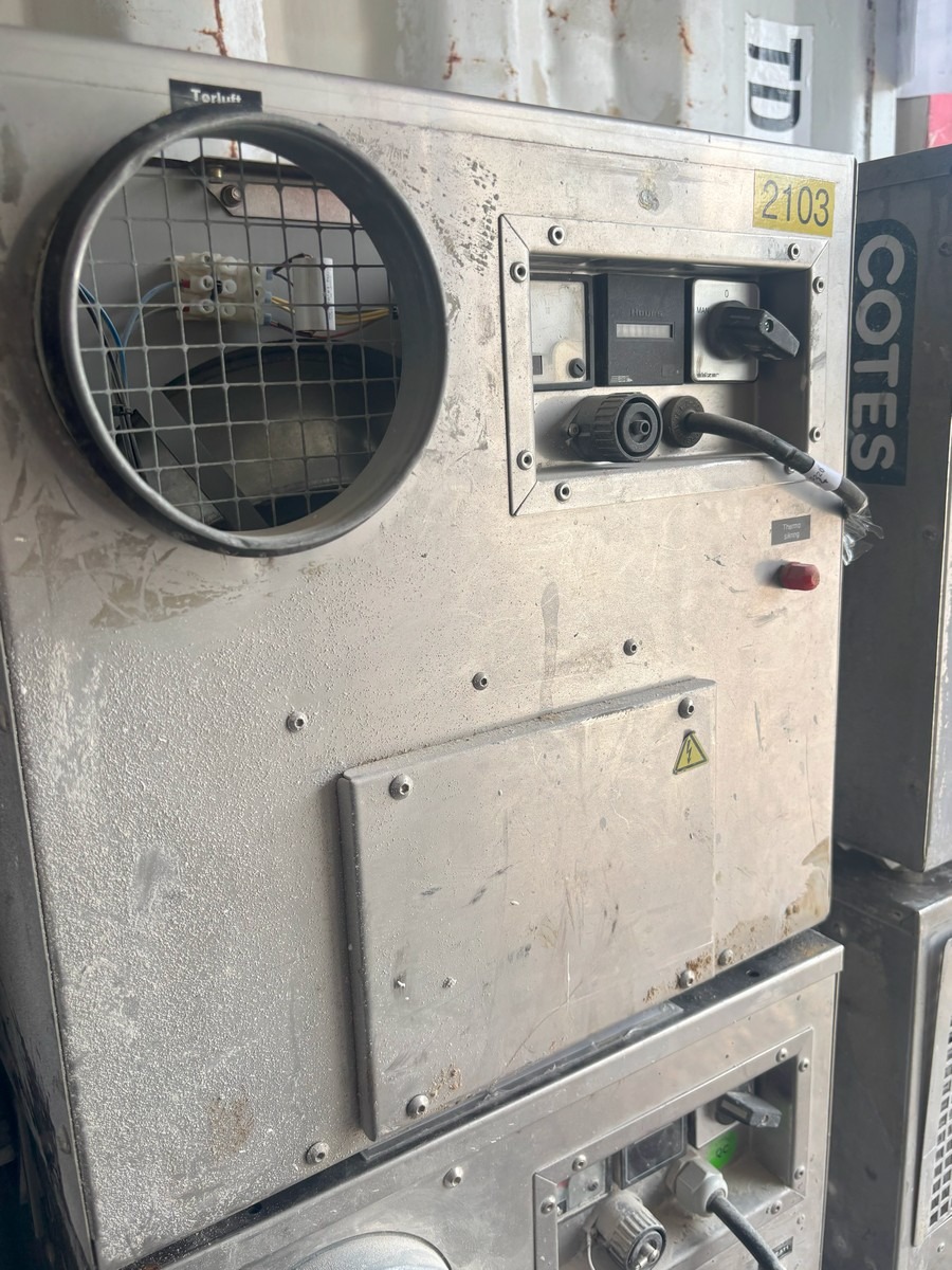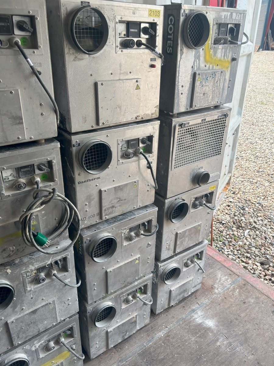 8 x Cotes industri adsorptionsaffugter model CR300B. KW heat: 1,38. KW total 1,52. KG 27, V 230, HZ 50. Måler: 43x40x47cm. Vejl. Ny pris ca. 17.500kr per stk. Kræver nok til service & evt. en gennemgang. Salg fra virksomhed