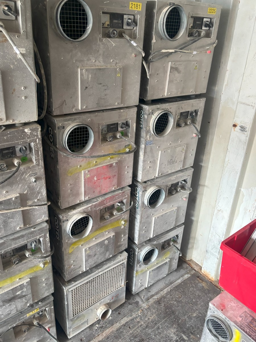 8 x Cotes industri adsorptionsaffugter model CR300B. KW heat: 1,38. KW total 1,52. KG 27, V 230, HZ 50. Måler: 43x40x47cm. Vejl. Ny pris ca. 17.500kr per stk. Kræver nok til service & evt. en gennemgang. Salg fra virksomhed