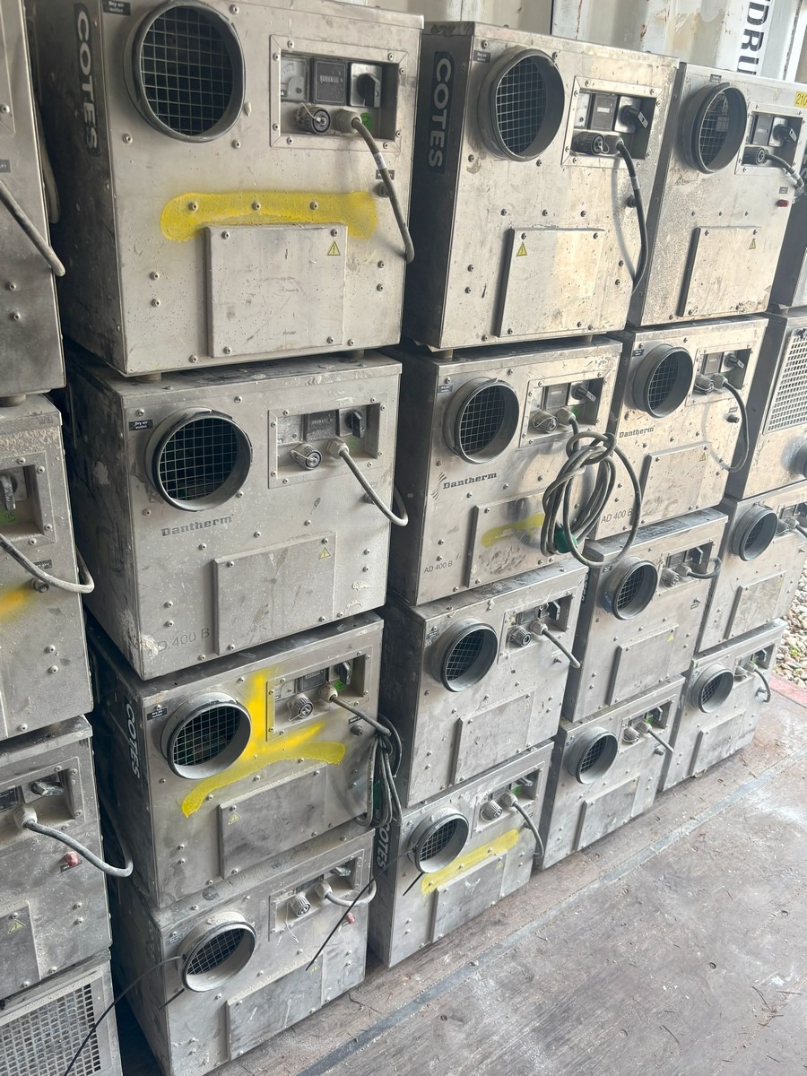 8 x Cotes industri adsorptionsaffugter model CR300B. KW heat: 1,38. KW total 1,52. KG 27, V 230, HZ 50. Måler: 43x40x47cm. Vejl. Ny pris ca. 17.500kr per stk. Kræver nok til service & evt. en gennemgang. Salg fra virksomhed