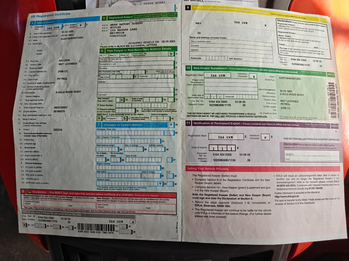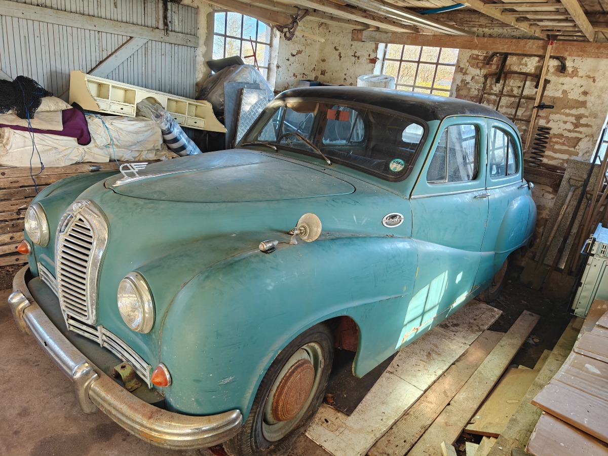 Austin Herford A70 årgang 53, englænder med rat i højre side med engelske papirer, trænger til en kærlig hånd, ej forsøgt startet