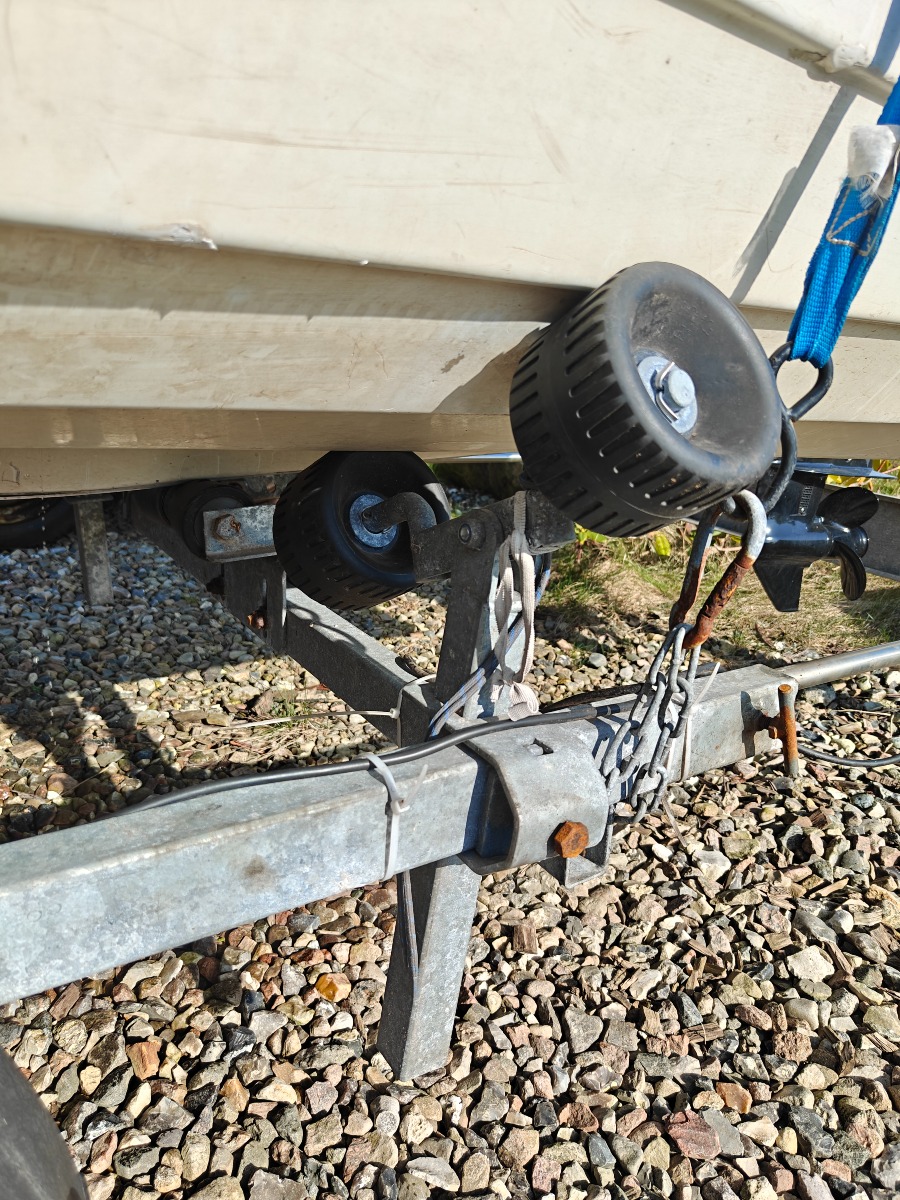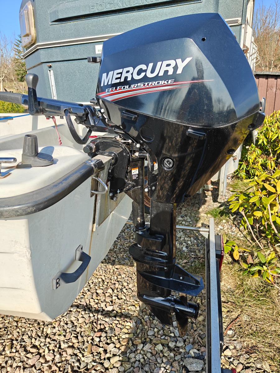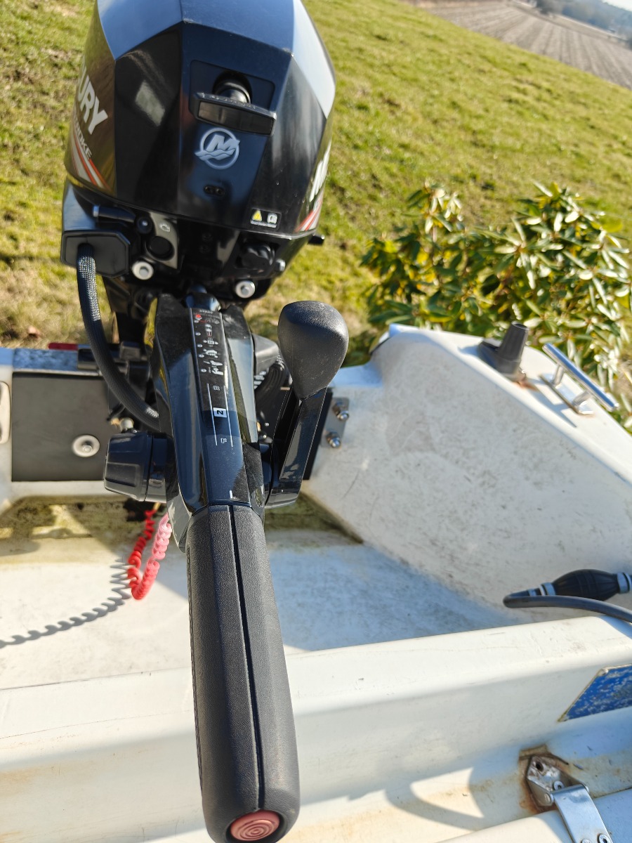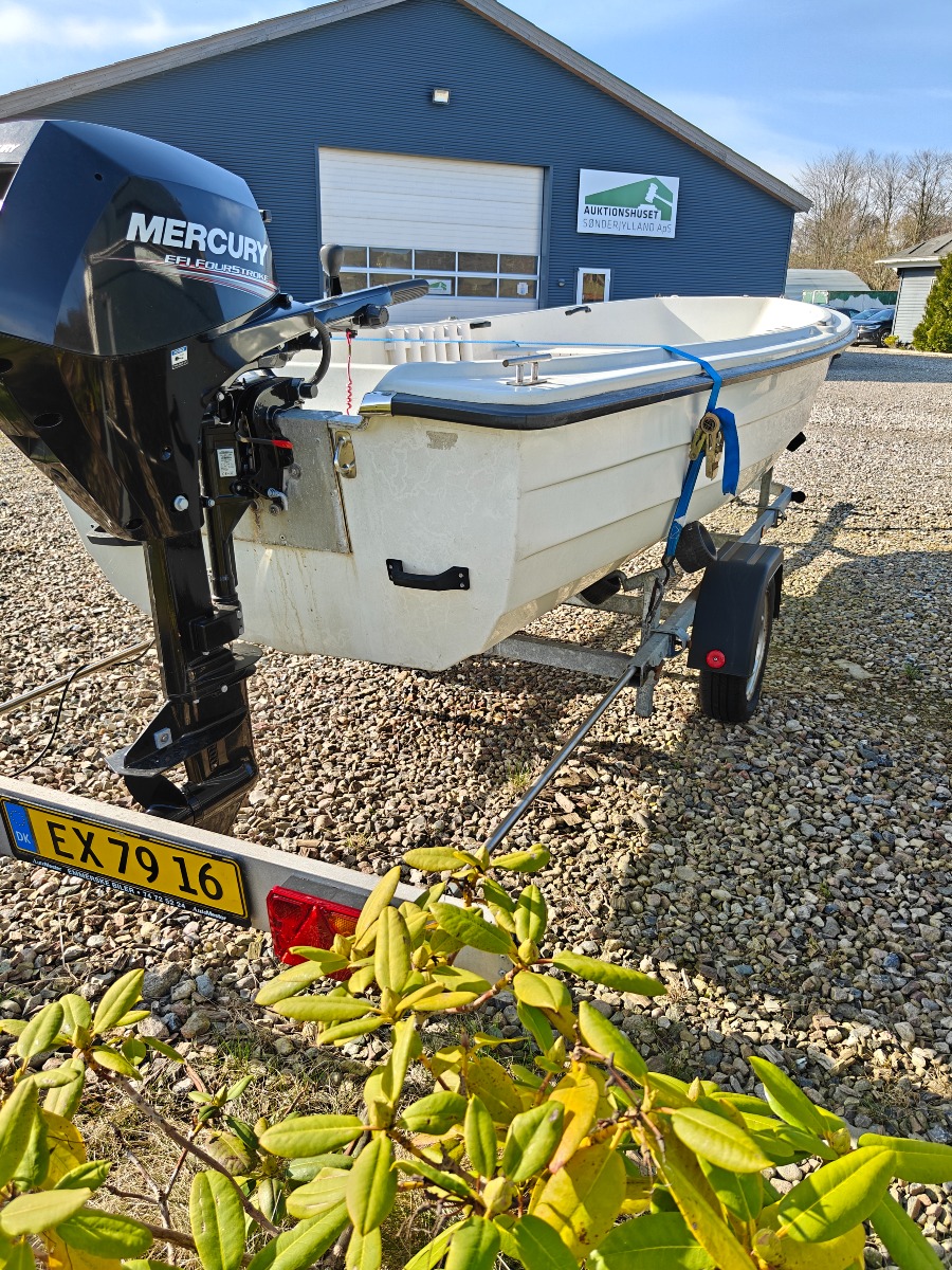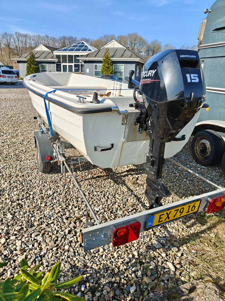 13 fods glasfiber speedbåd med 15 hk Mercury EFI, MLH påhængsmotor, motor købt som ny d. 20/1 - 2025 til 19040 kr + moms. kvittering haves.  Med variant bådtrailer VA Ocean 750 13" 750 kg årgang 2022 pris 6396 kr + moms kvittering haves