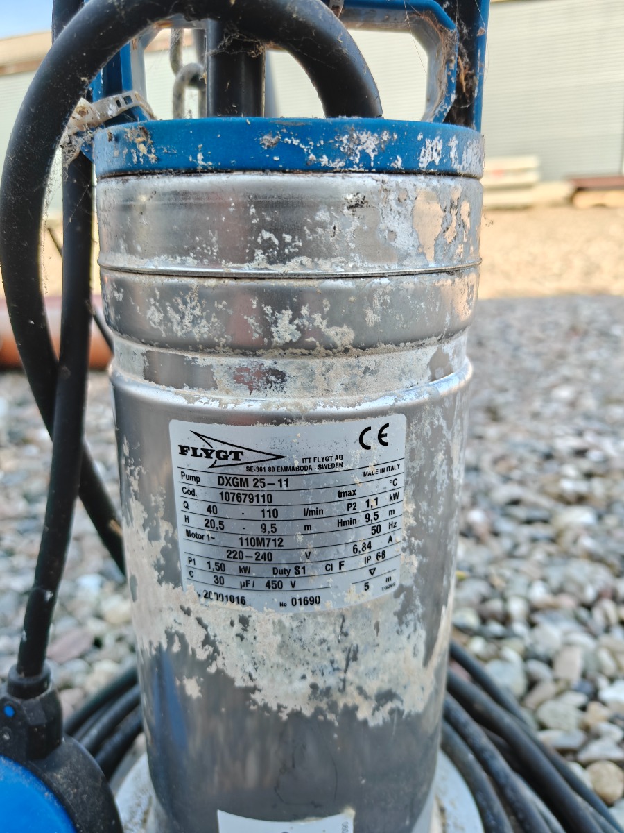 Flygt spildevandspumpe model DXGM 25-11 monteret på plade