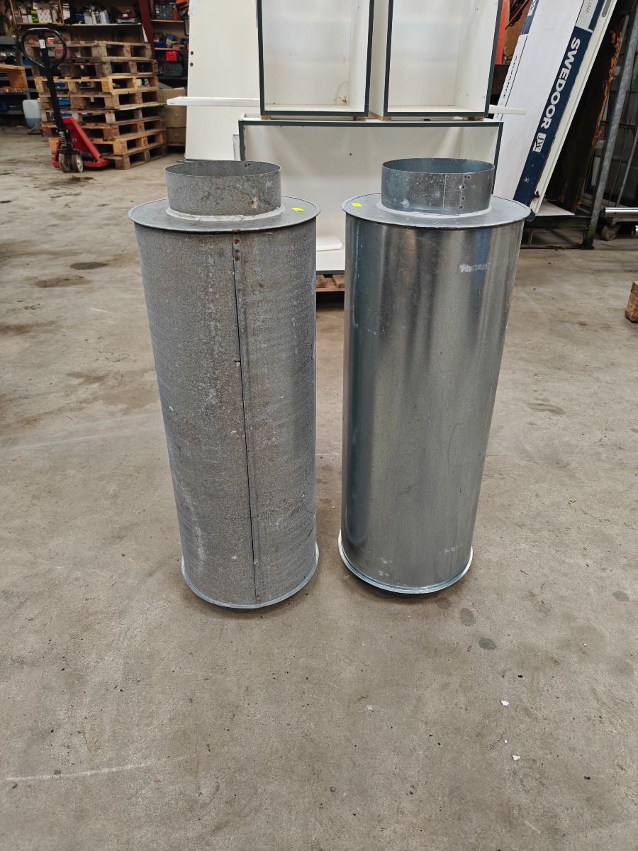 2 stk Lyddæmper til ventilation længde på dæmper 67 cm studser ø 160 mm, dæmper ø 260 mm ubrugt