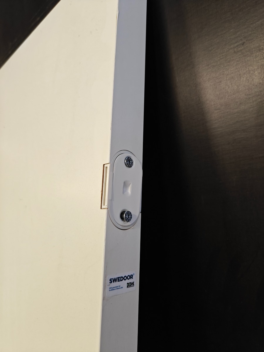 swedoor dør advance line hvid stabel glat fiber ukarm og låse cylinder, mål 925 x 2040 x 40 mm lille skramme i bunden ellers pæn