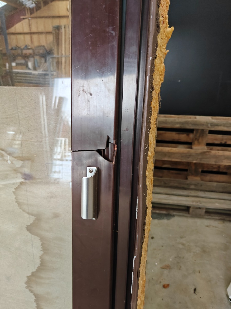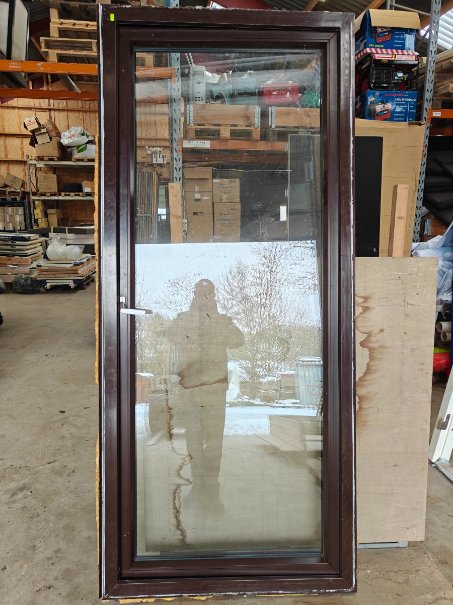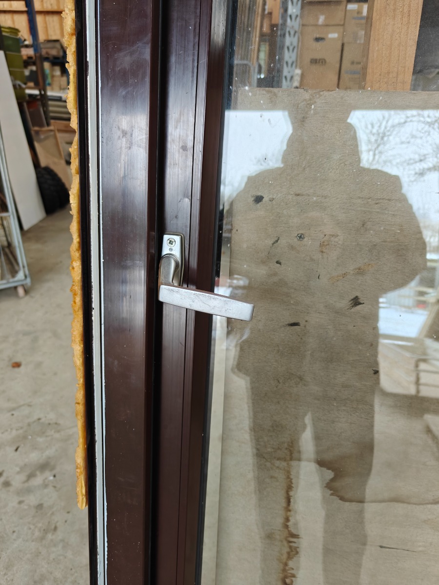Terrasse dør i plast. brun, mål 70 x950 x 2178 mm revnet i plast døren