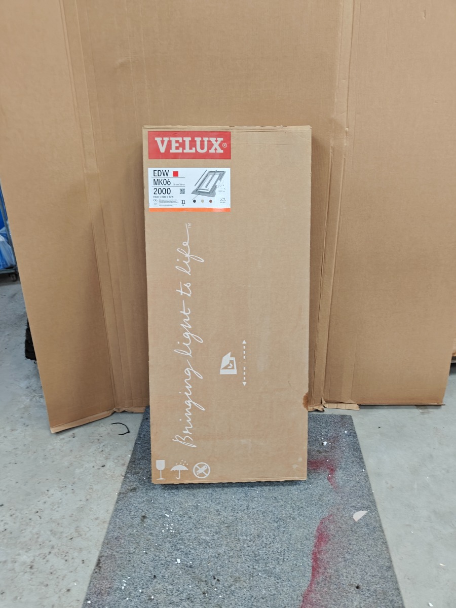Velux ovenlys vindues inddækning EDW MK06 2000 til vinduesmål mål 78 x118 cm + 2 stk limtræ stolper tilmontering af ovenlys vindue, mål 75 x 120 x1780 mm ubrugt