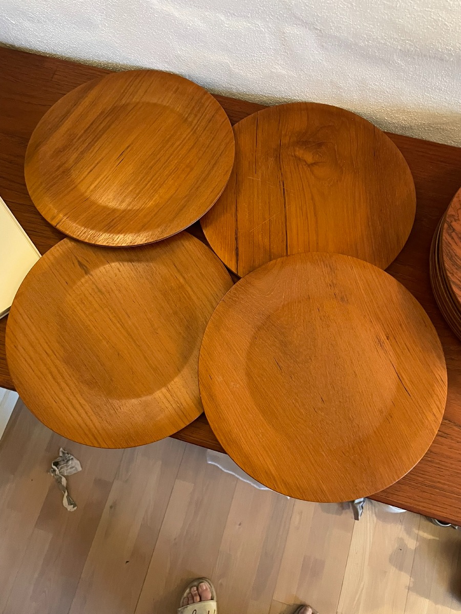 4 stk. teak, Ø. 27,5 cm.