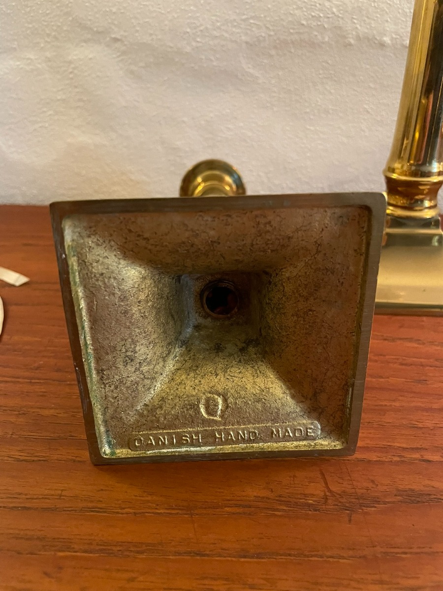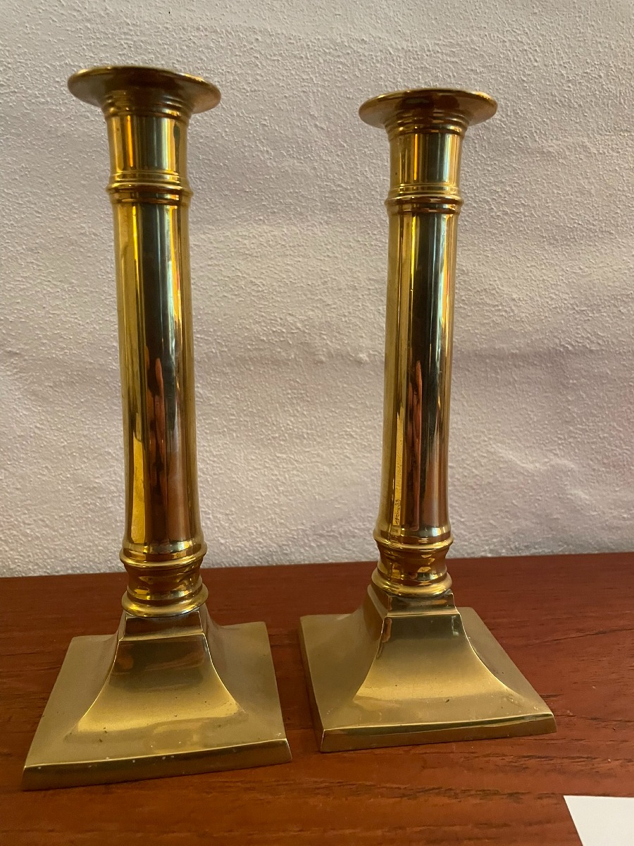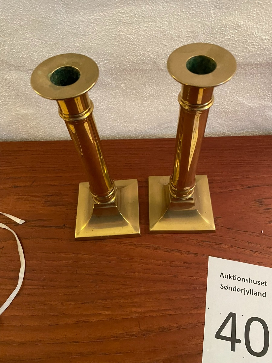 Par messingstager, empireform. Stemplet i bunden, "Danish Handmade". H. 23 cm. Samlet vægt 1,6 kg.