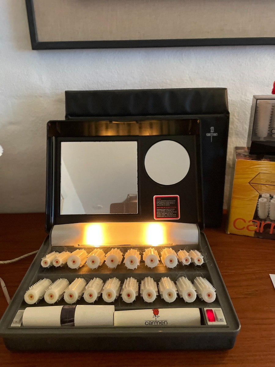 1 Carmen international curler sæt 110/2220V. Præsentations sæt med lys i kassen og spejl i låget. Der medfølger taske til sættet.