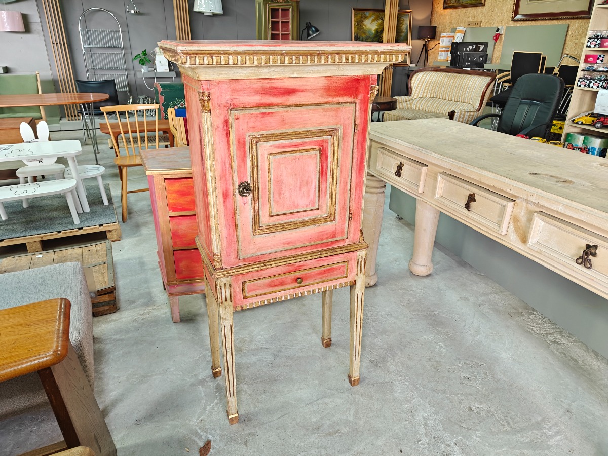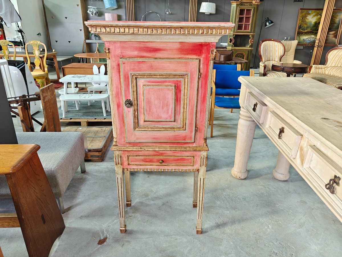 Almuemalet skab på ben. Gustaviansk form. H. 128, B. 66, D. 36 cm.