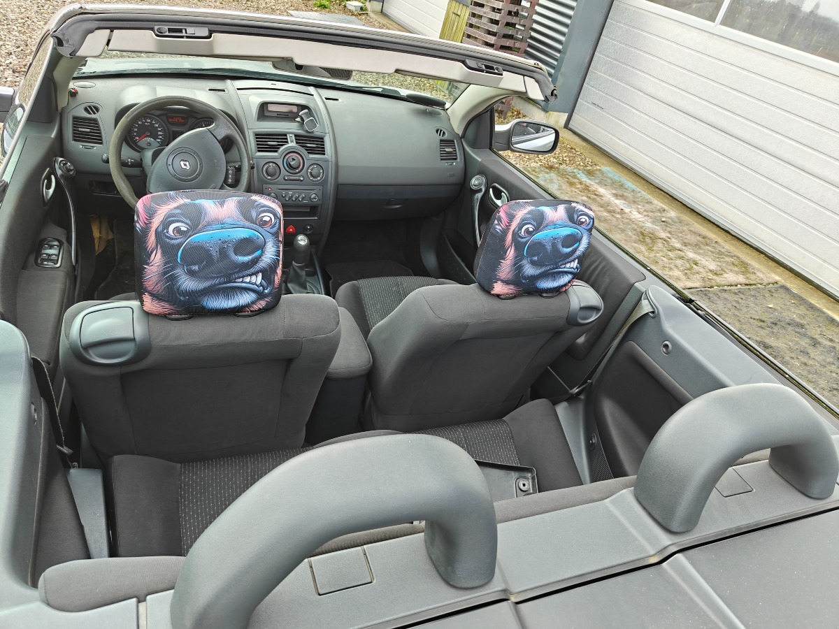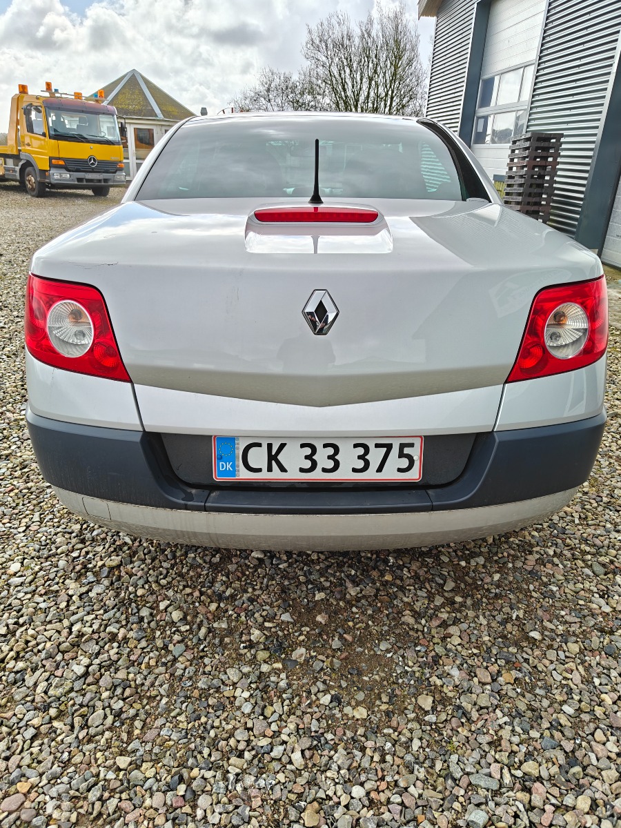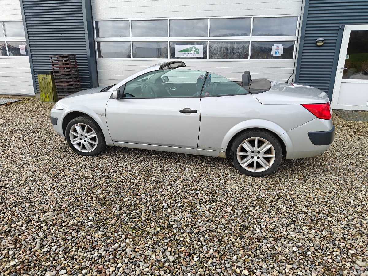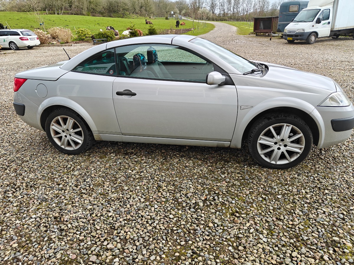 Renault Megane 1,6 16 V Cabriolet med blødt tag. Årgang 2005, Opgivet forbrug på 14,3 km/l, kørt 234738 km Med regi. attest. kun brugt til sommer kørsel Skal omregistreres ved afhentning (husk MIT ID). Brugt men i pæn stand. Bemærk: Køber salær er maks på 3600kr + dek gebyr.