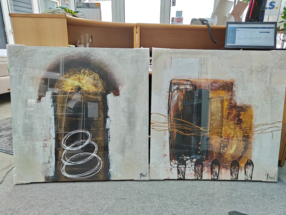 2 malerier, abstrakt komposition