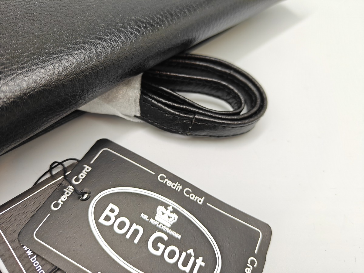 Bon Gout Ipad taske, sort læder. Skulderstrop medfølger. Ydre mål 20 x 25 cm.