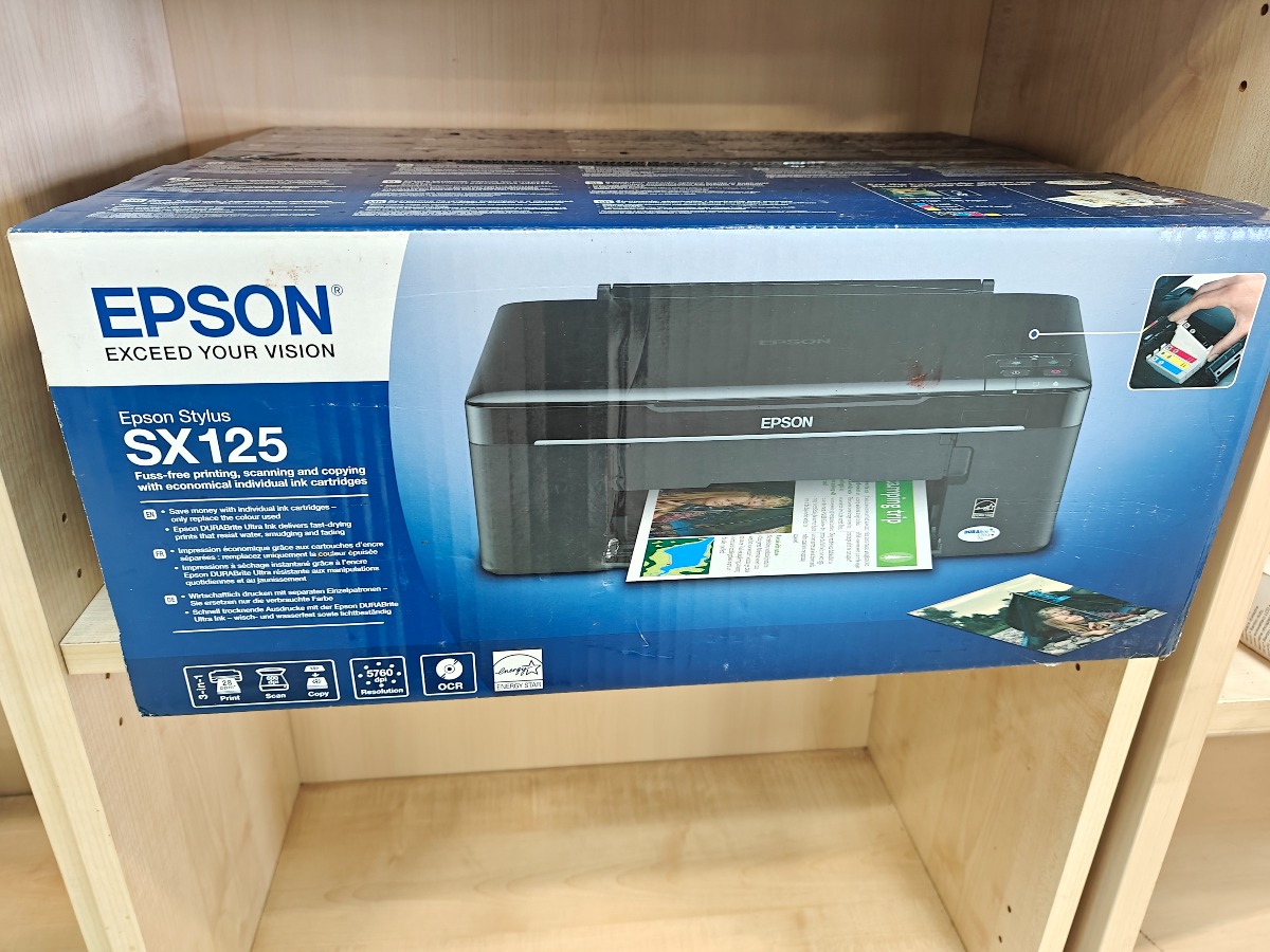 Epson stylus SX125 all in one printer i original ubrudt embalage. Vi garanterer ikke for funktionaliteten.
