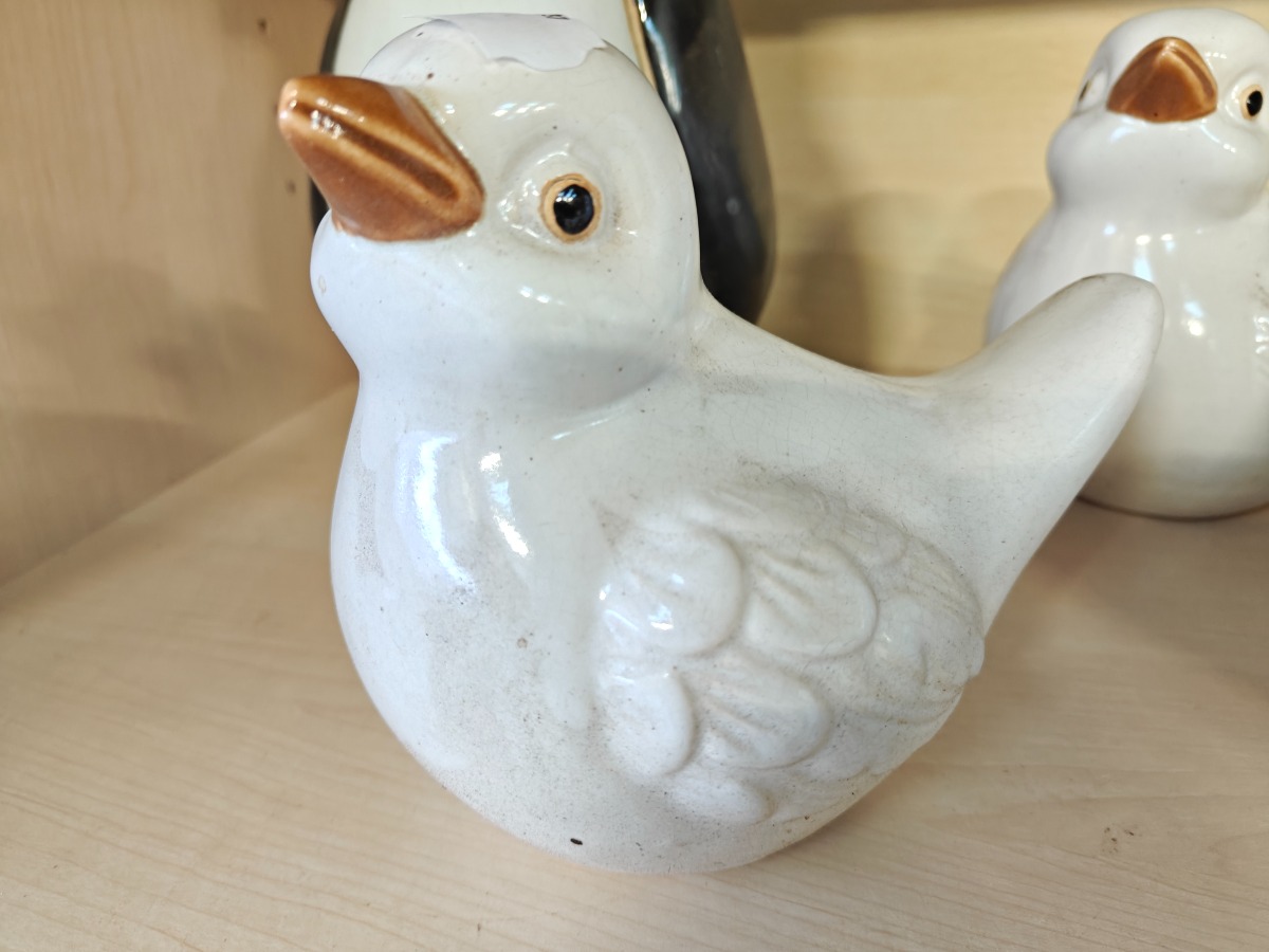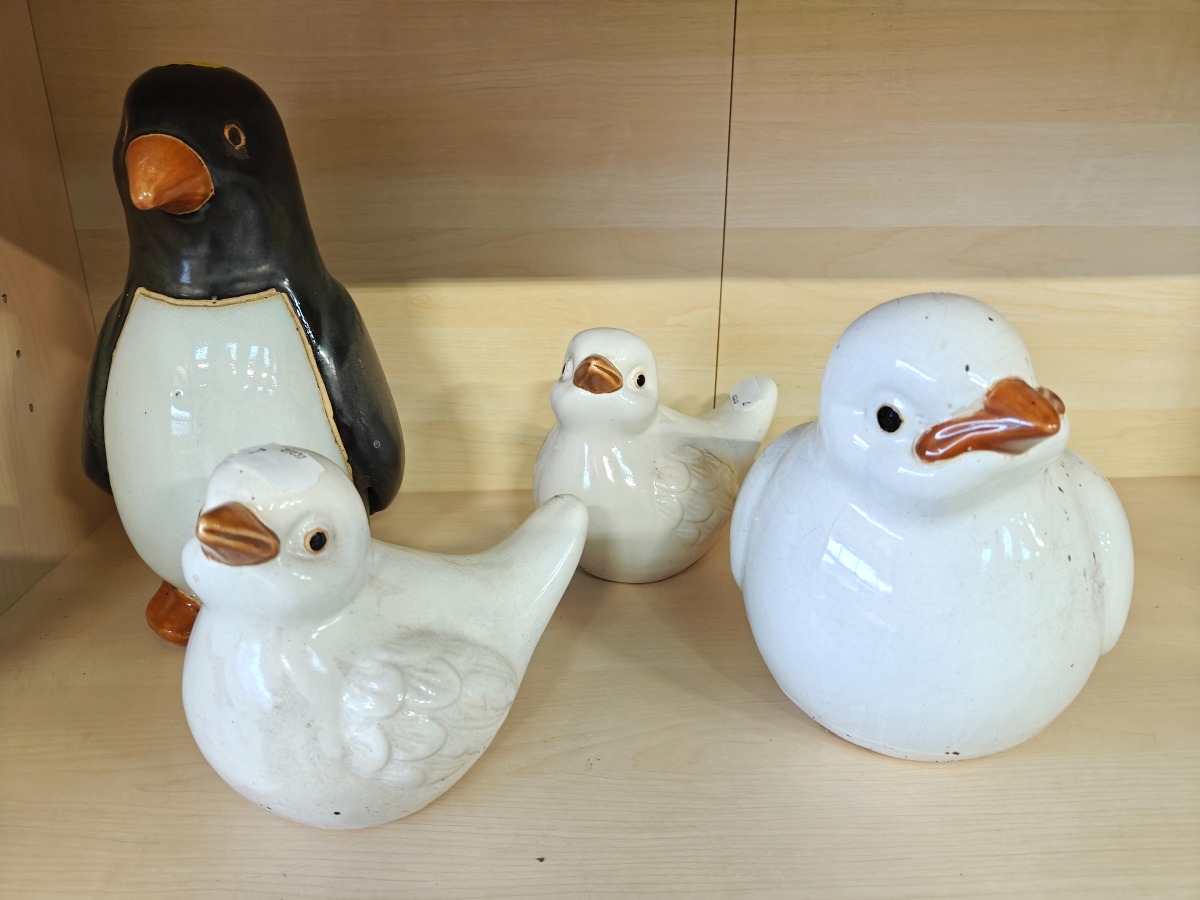 Keramikfugle, 4 stk. H. for pingvin til sammenligning, 28 cm.
