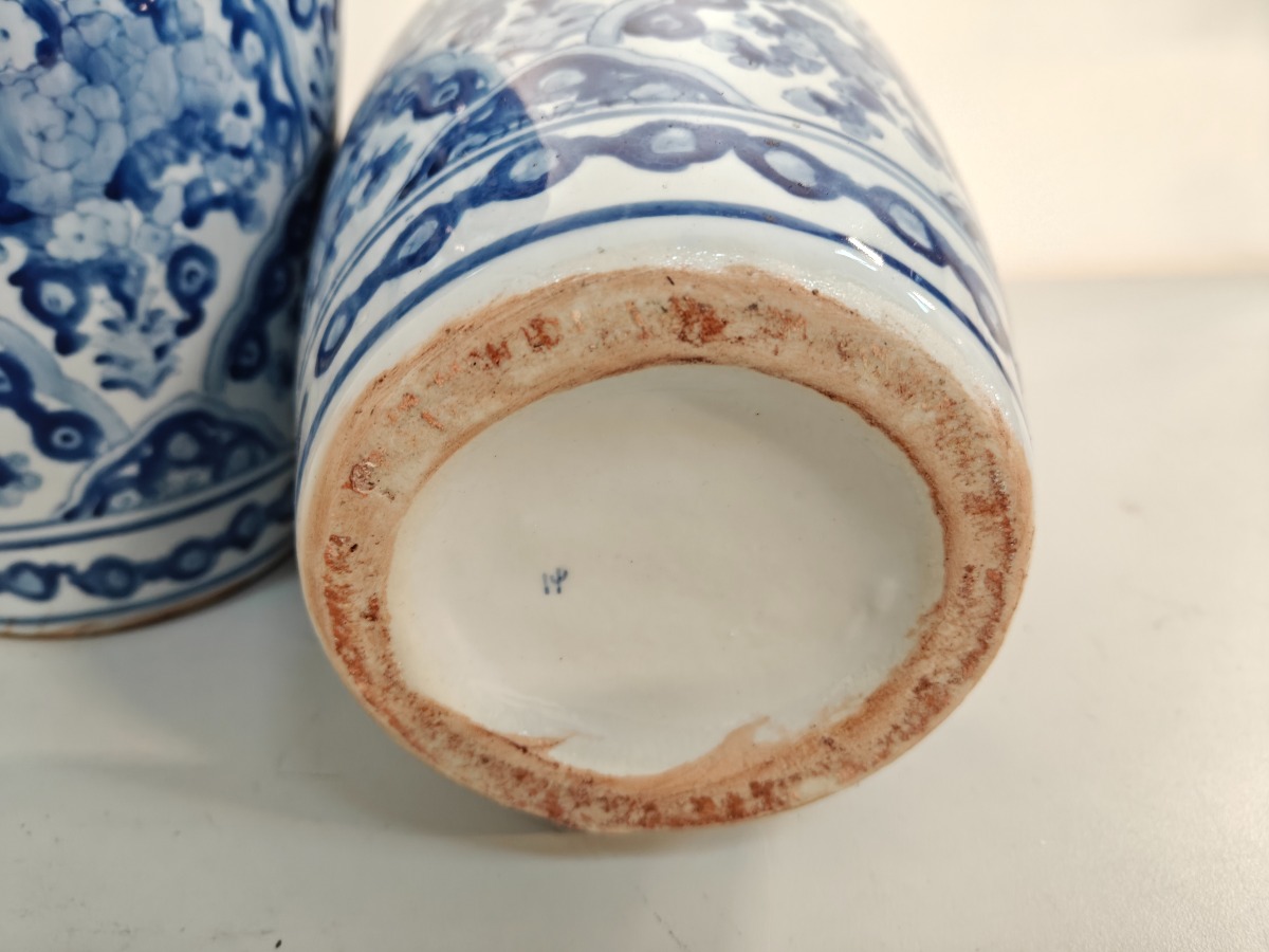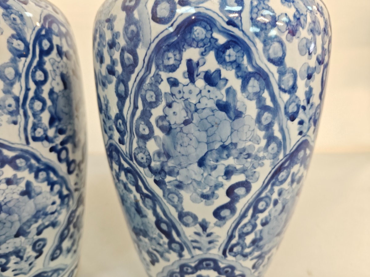 Par kinesiske vaser med blåmalet floral dekor. H. ca. 30 cm.