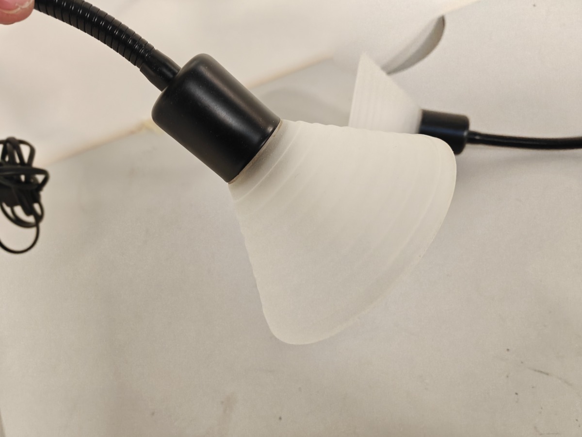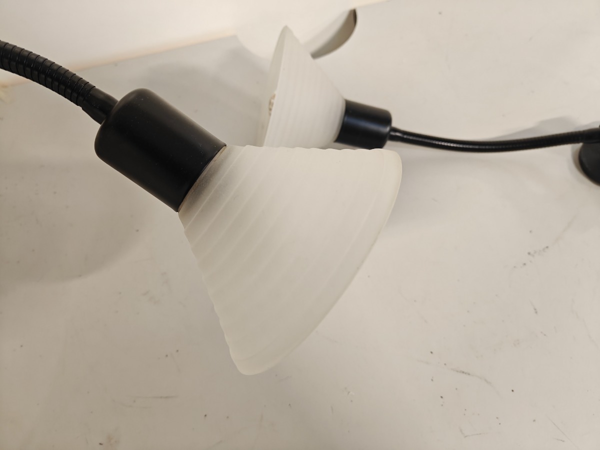 Par væglamper med sort svanehals. Skærme af matglas.