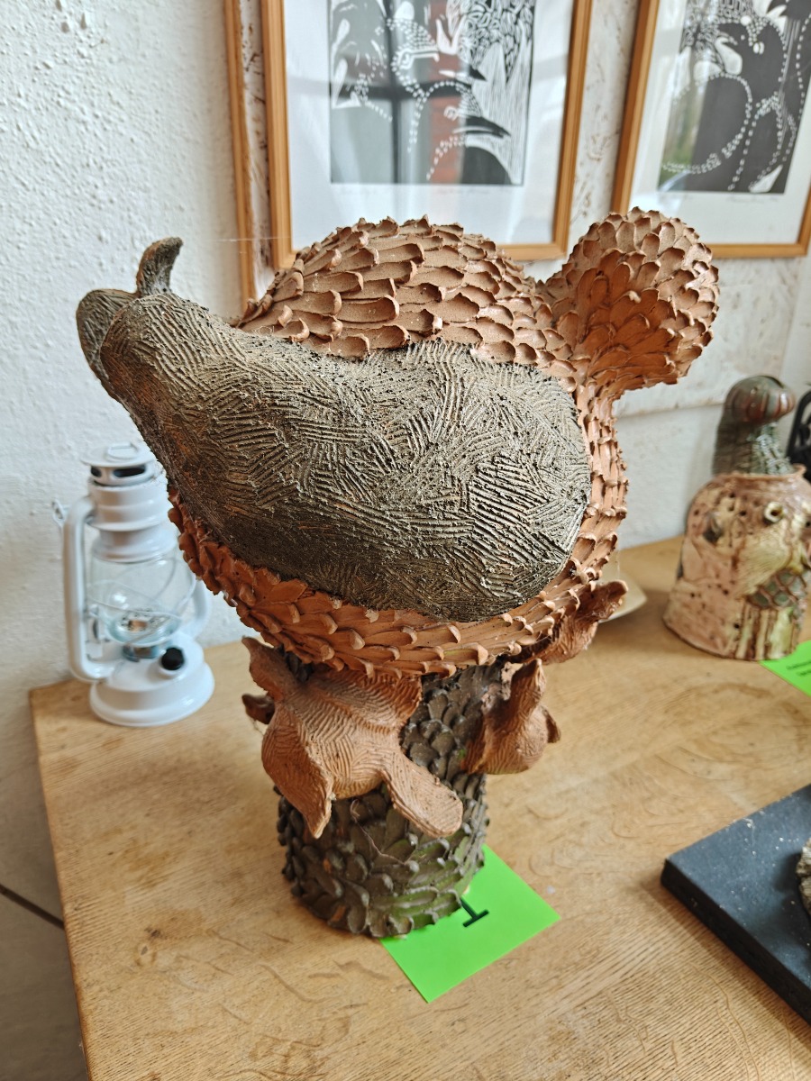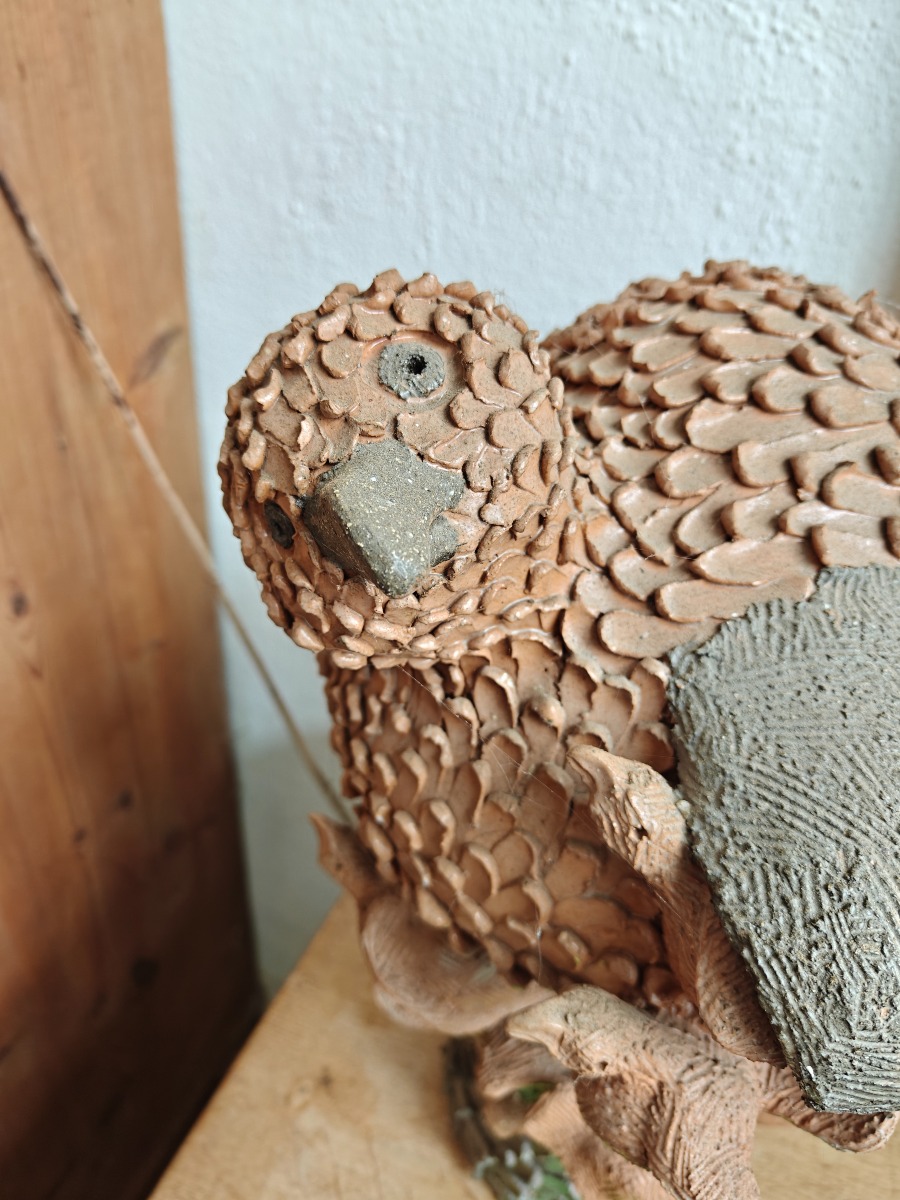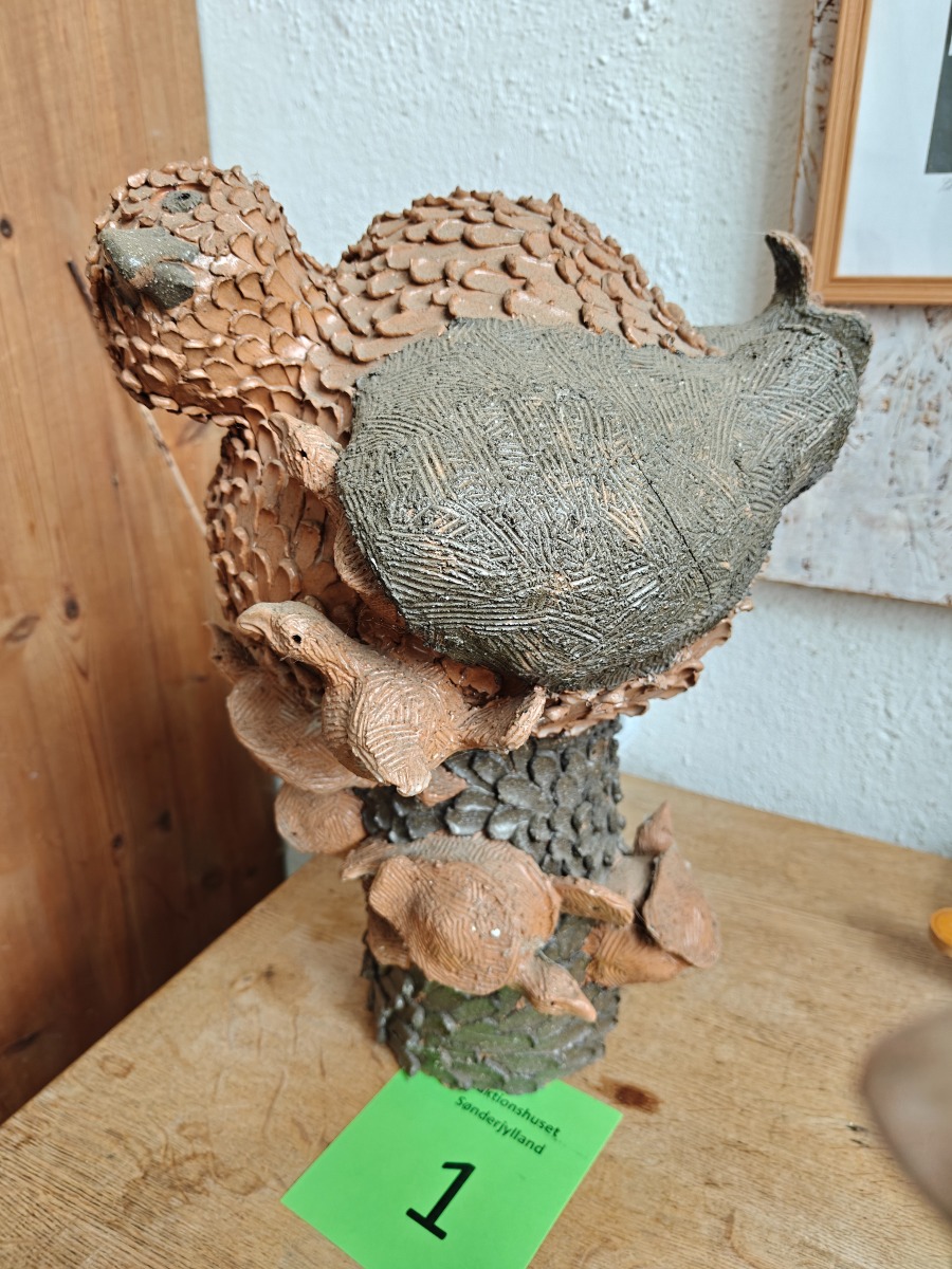 Marianne Permin. Fuglemor med unger, af keramik. H. 43 cm. Effekterne stammer alle fra Boet efter Kunstner Marianne Permin. Keramik af kunstneren selv er 2. sort. Derfor kan der forekomme fejl eller mangler.