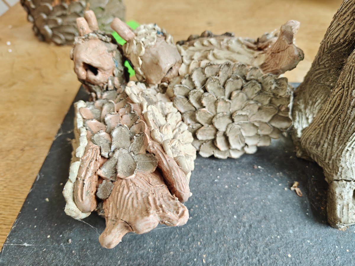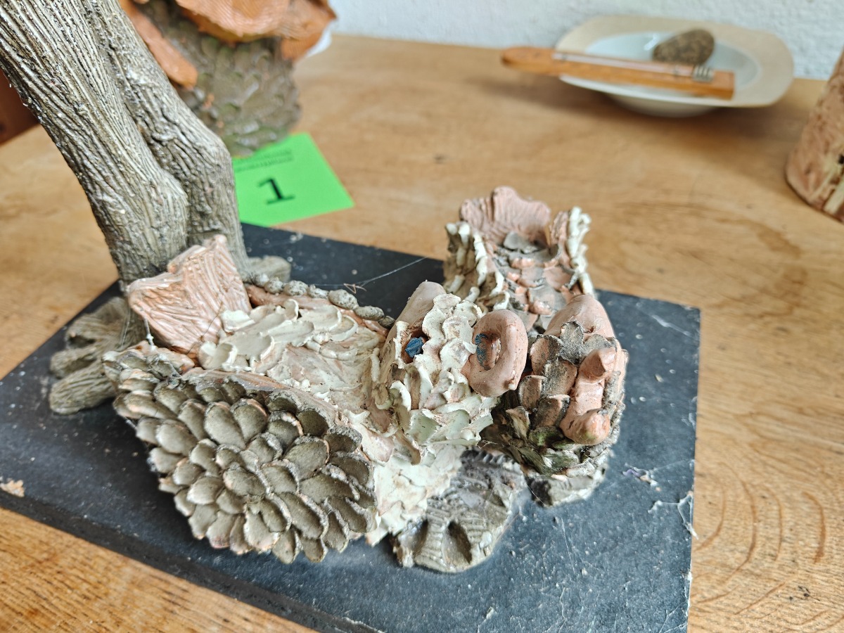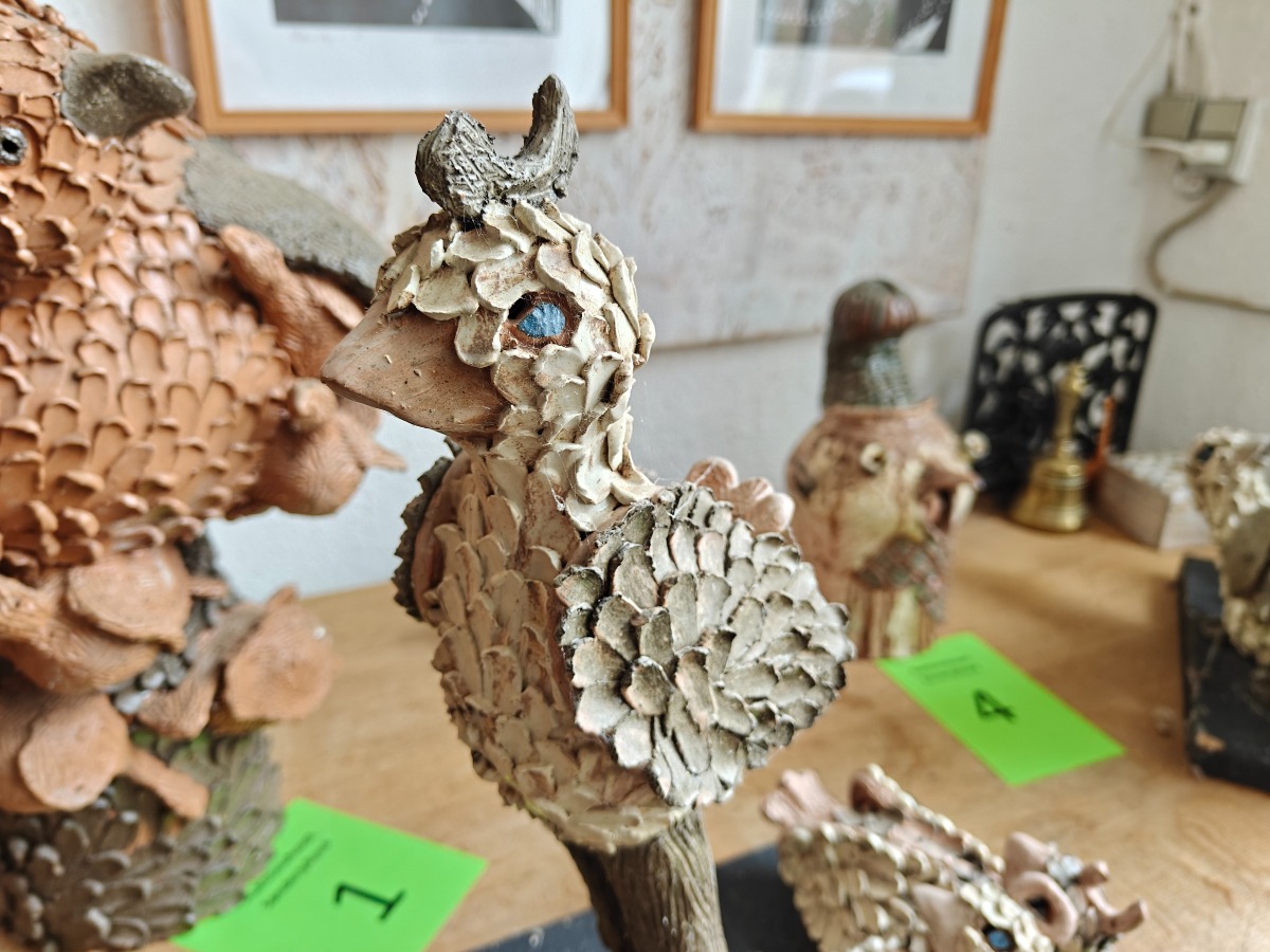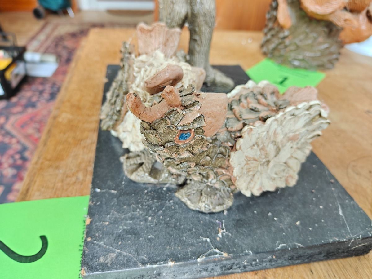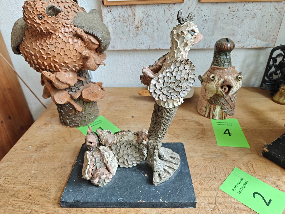 Marianne Permin. Stående fuglemor med unger, af keramik. H. 41 cm. Effekterne stammer alle fra Boet efter Kunstner Marianne Permin. Keramik af kunstneren selv er 2. sort. Derfor kan der forekomme fejl eller mangler.