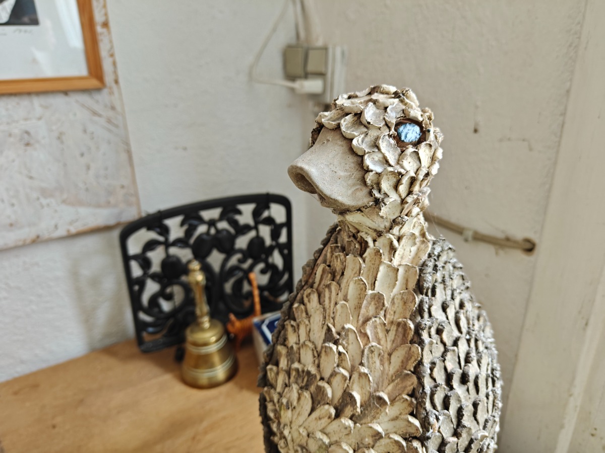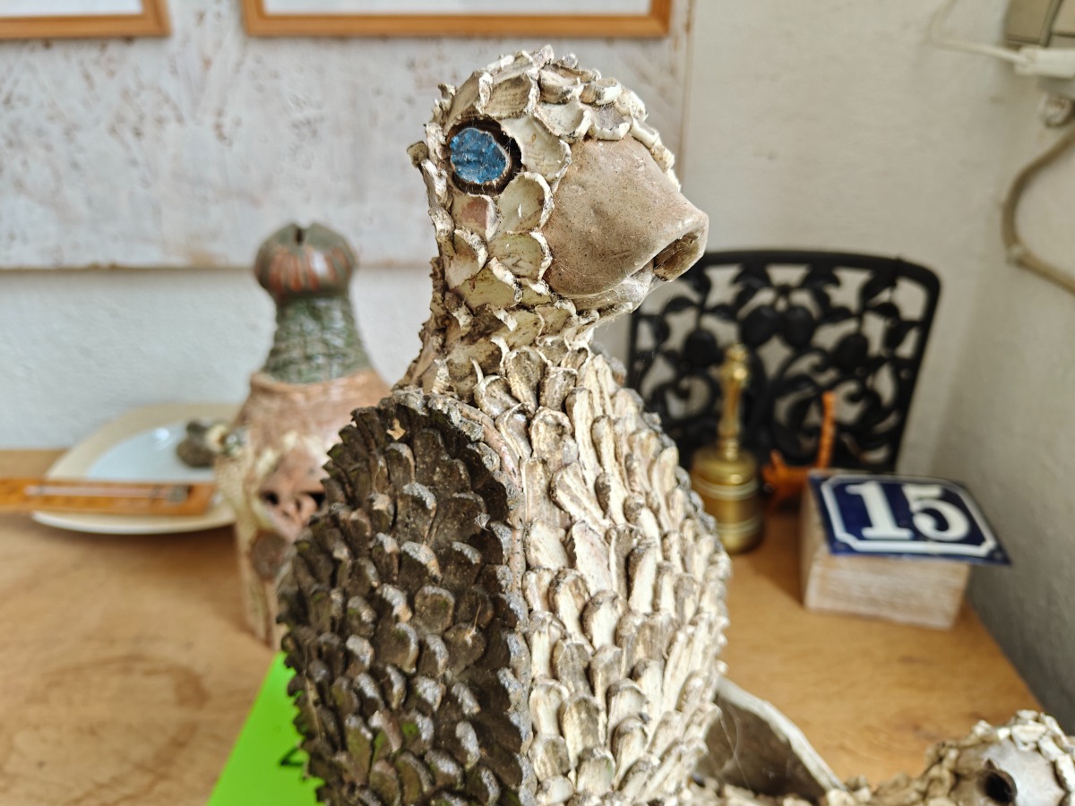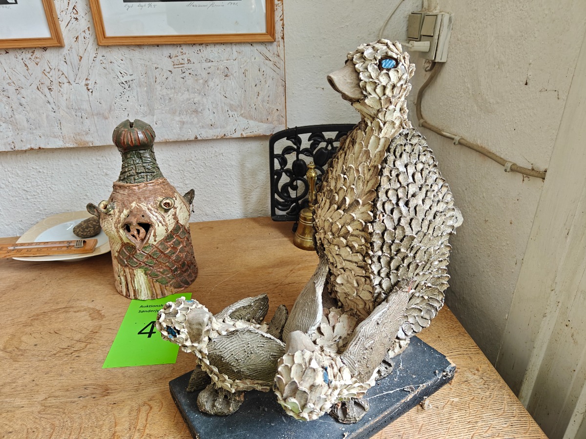 Marianne Permin. Stående fuglemor med 2 unger, af keramik. H. 42 cm. Effekterne stammer alle fra Boet efter Kunstner Marianne Permin. Keramik af kunstneren selv er 2. sort. Derfor kan der forekomme fejl eller mangler.