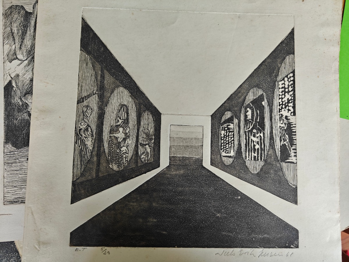 Samling af forskellige tryk. Mange størrelser. Effekterne stammer alle fra Boet efter Kunstner Marianne Permin. Keramik af kunstneren selv er 2. sort. Derfor kan der forekomme fejl eller mangler.