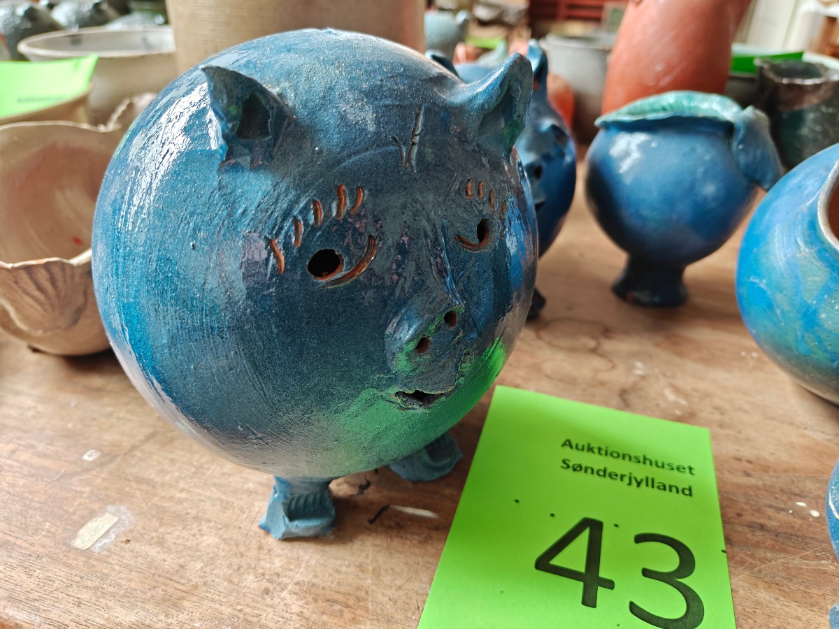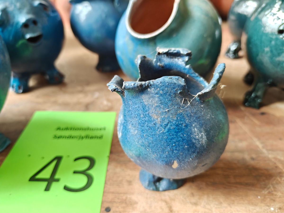 Marianne Permin. Blå keramik. Bl.a. 2 grise. Effekterne stammer alle fra Boet efter Kunstner Marianne Permin. Keramik af kunstneren selv er 2. sort. Derfor kan der forekomme fejl eller mangler.