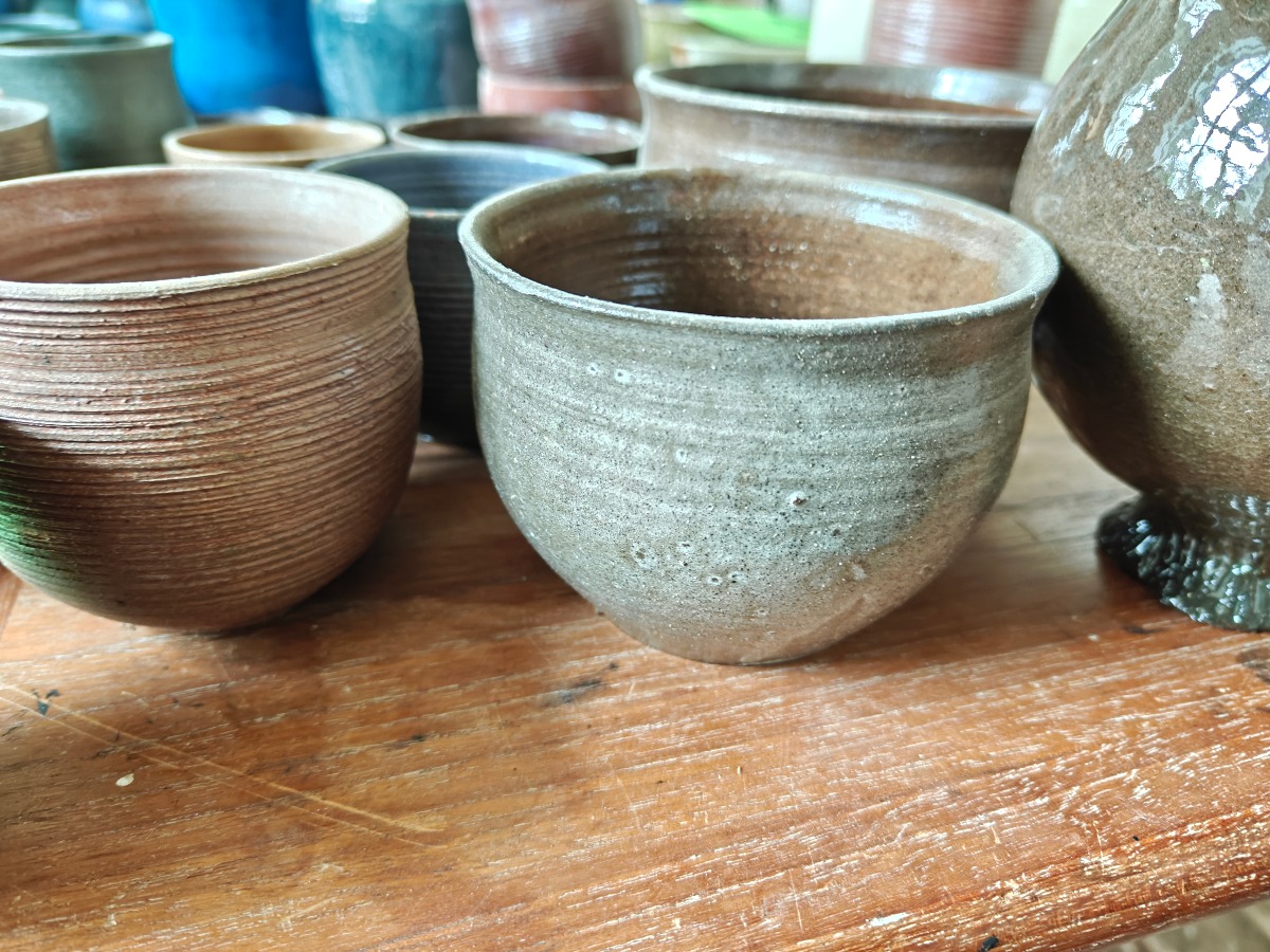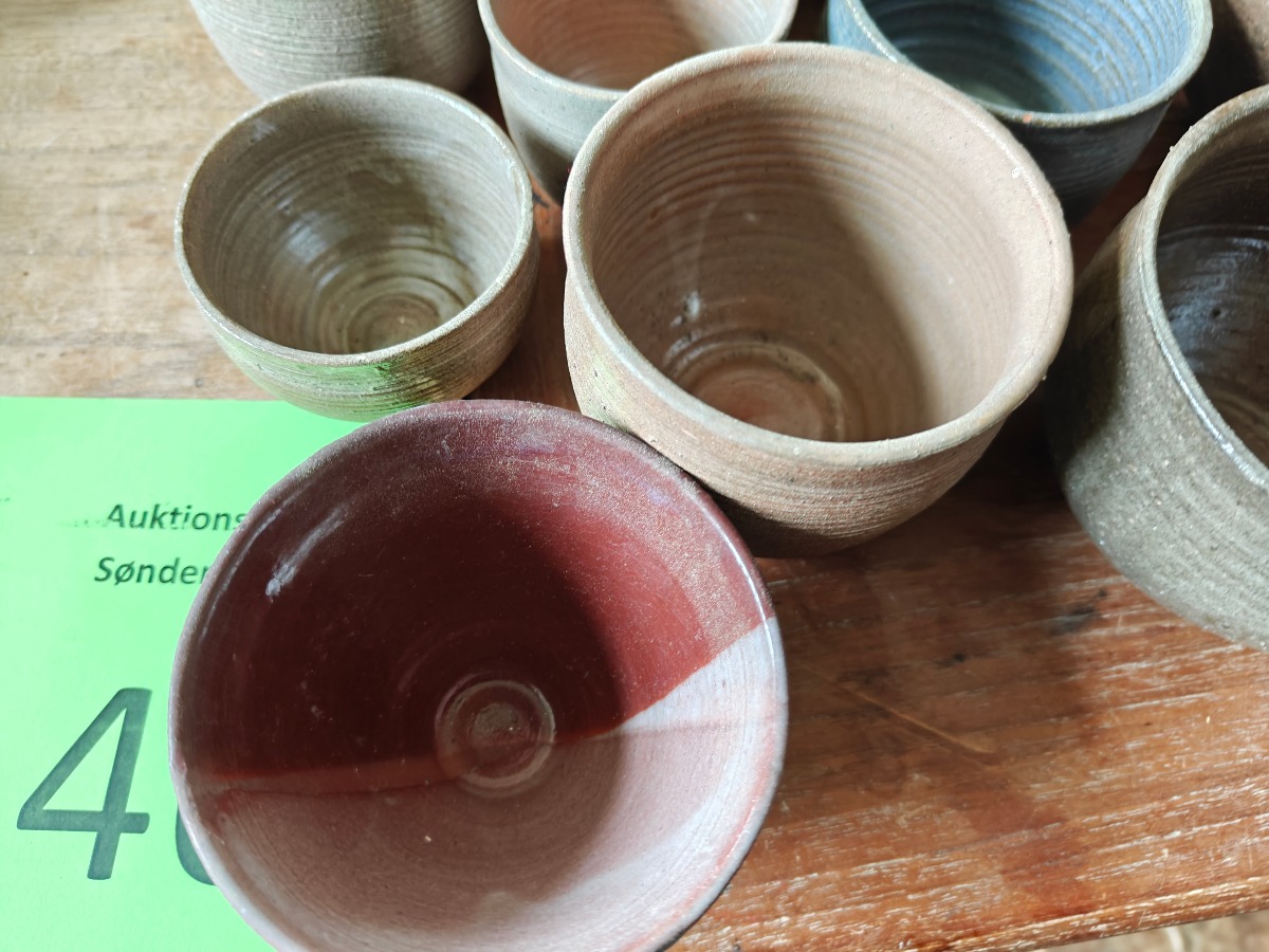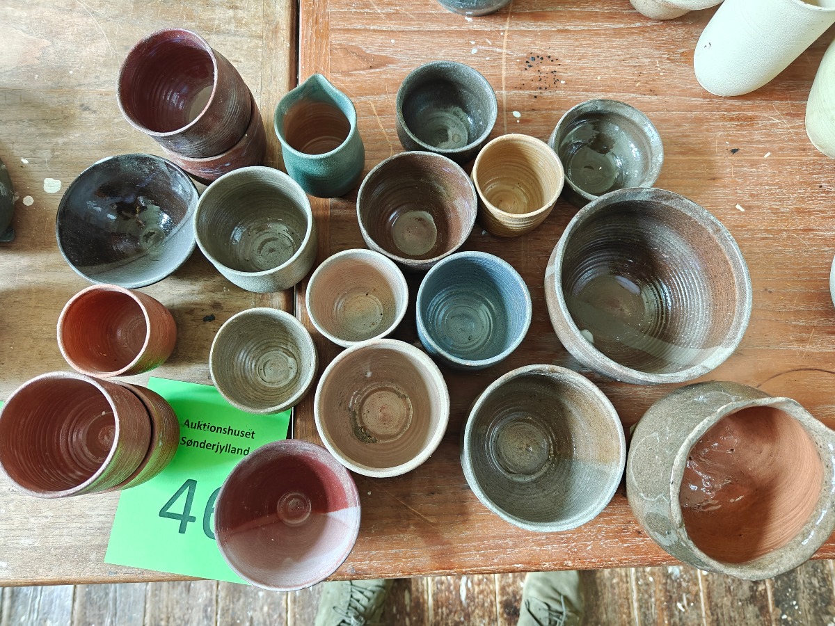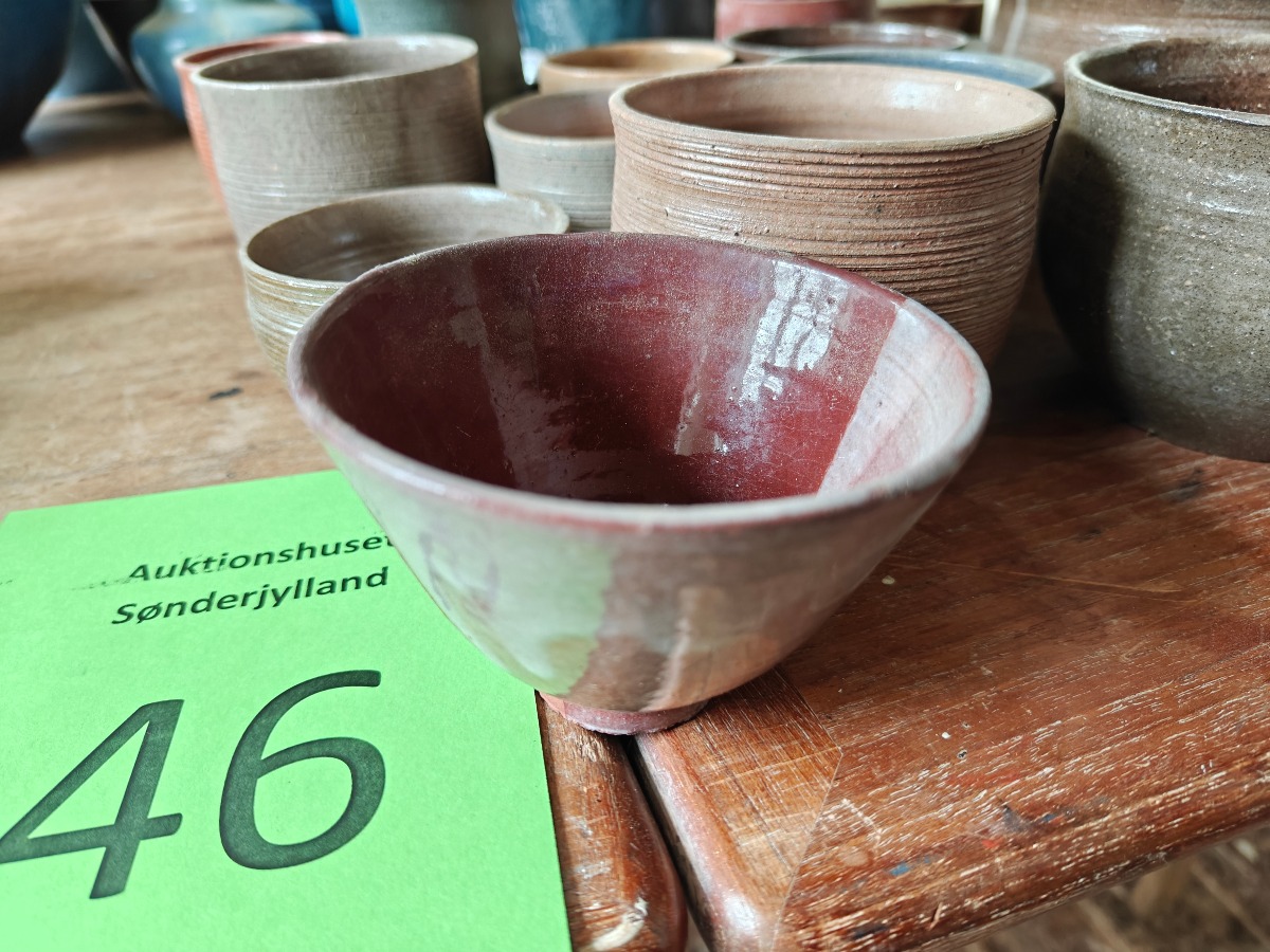 Marianne Permin. Stor samling skåle af keramik i jordlignende farver. Effekterne stammer alle fra Boet efter Kunstner Marianne Permin. Keramik af kunstneren selv er 2. sort. Derfor kan der forekomme fejl eller mangler.