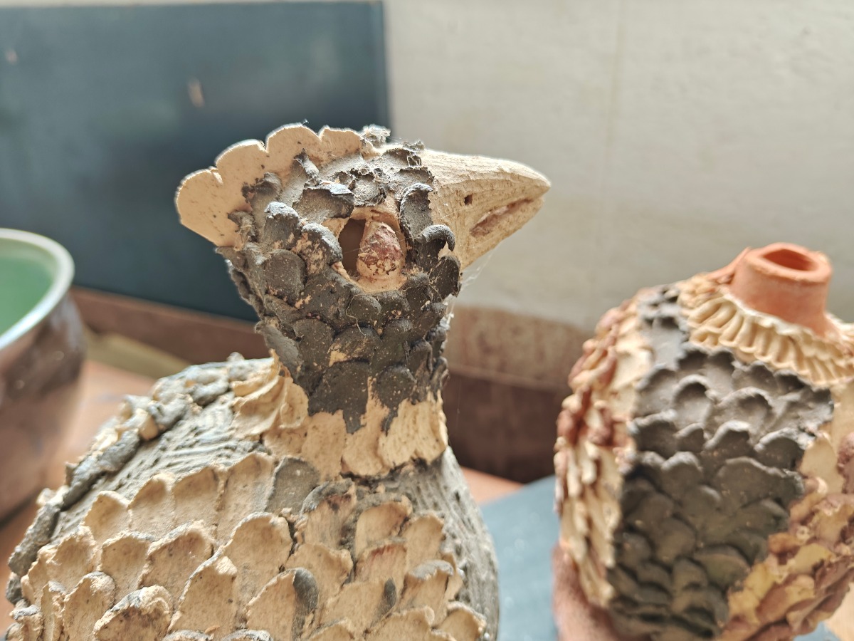 Marianne Permin. 2 fugle af keramik. H. ca. 23 cm. Effekterne stammer alle fra Boet efter Kunstner Marianne Permin. Keramik af kunstneren selv er 2. sort. Derfor kan der forekomme fejl eller mangler.