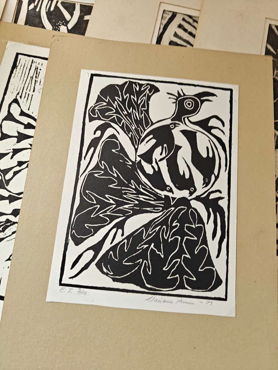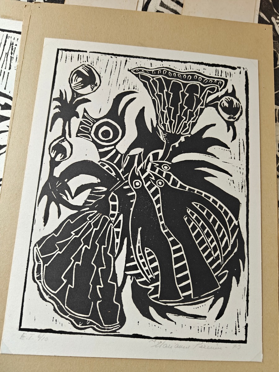 Marianne Permin m.fl. Tryk. Ca. 30 x 20 cm. Effekterne stammer alle fra Boet efter Kunstner Marianne Permin. Keramik af kunstneren selv er 2. sort. Derfor kan der forekomme fejl eller mangler.