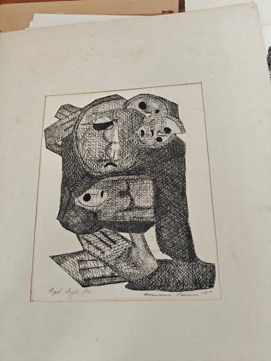 Samling tryk og tegninger. Effekterne stammer alle fra Boet efter Kunstner Marianne Permin. Keramik af kunstneren selv er 2. sort. Derfor kan der forekomme fejl eller mangler.