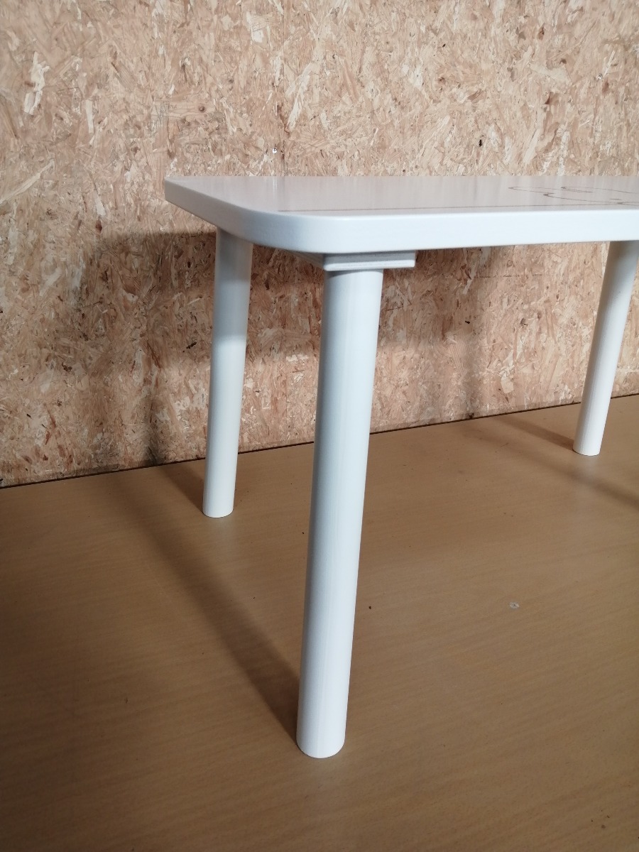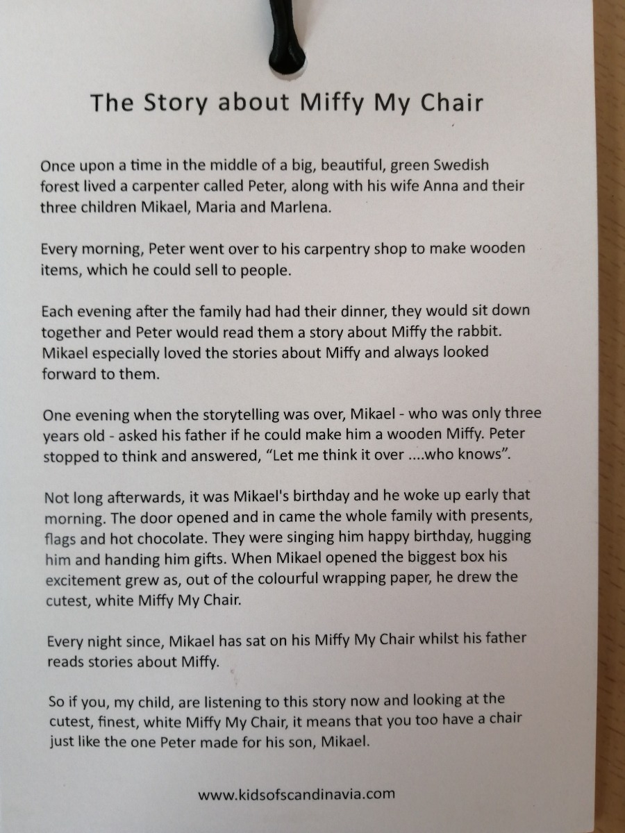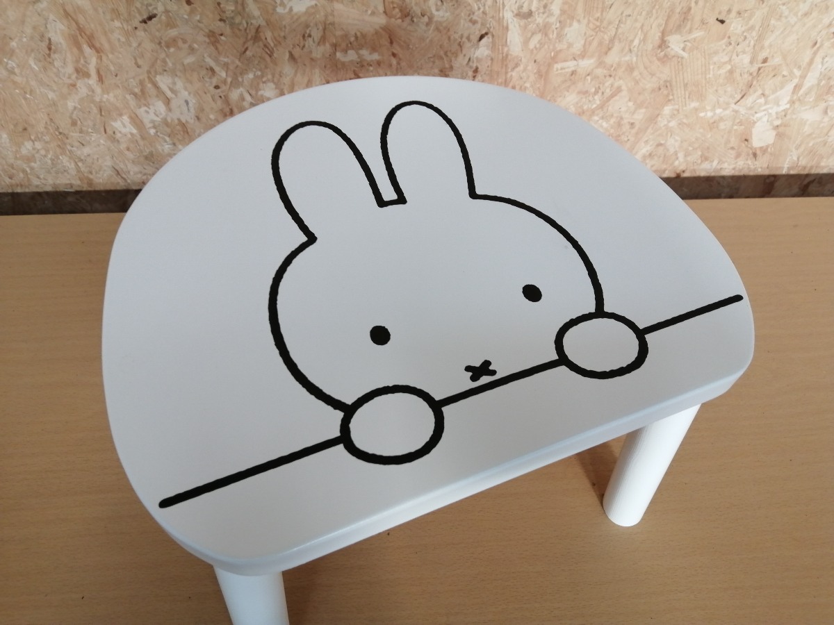 Børnesæt - "Miffy My Furniture" bestående af Miffy bænk (64 x 27,5 x 25,5 cm.), Miffy stol (59 x 32 x 30 cm), 2 x Miffy skammel (), samt Miffy bord (74, 5 x 45,5 x 45 cm). Der er ingen „skarpe“ hjørner, så det er meget børnevenligt. Det er lavet af træ og MDF. Passer til alder 2 - 5 år. Ubrugt og i original emballage.