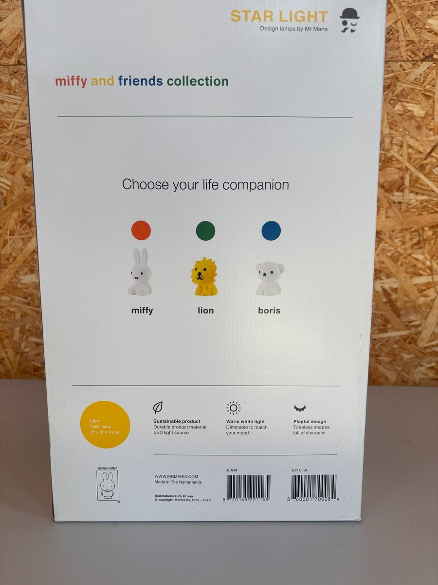 2 stk. Lion Star Light. Med. berøringsdæmperknap på strømkablet til at vælge én af ​​de 6 lysstyrkeindstillinger. Den sidste lysstyrkeindstilling, nattilstanden, er en ekstremt blød glød, som du kan lade stå om natten. Nypris ca. 1.000kr per stk. Lampen måler B25 x H41 x D30 cm. Ubrugt.