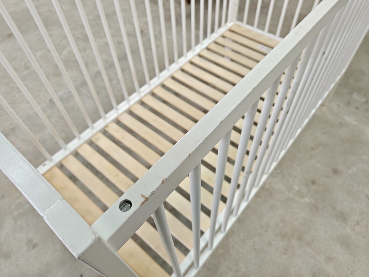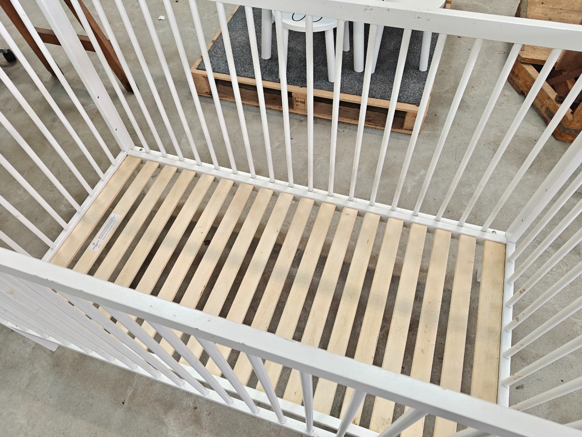 Tremmeseng, hvid. Mindre brugsspor. 60 x 120 cm.