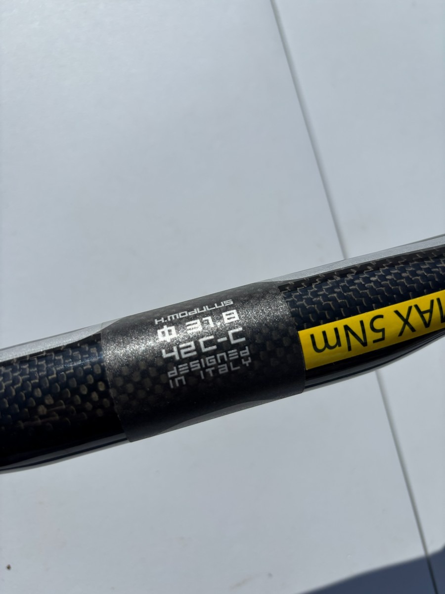 Styret har en bredde på 42 cm (c-c) og passer til frempind med 31,8 mm diameter. Fremstillet i high modulus carbon, som giver god vibrationsdæmpning og lav vægt.