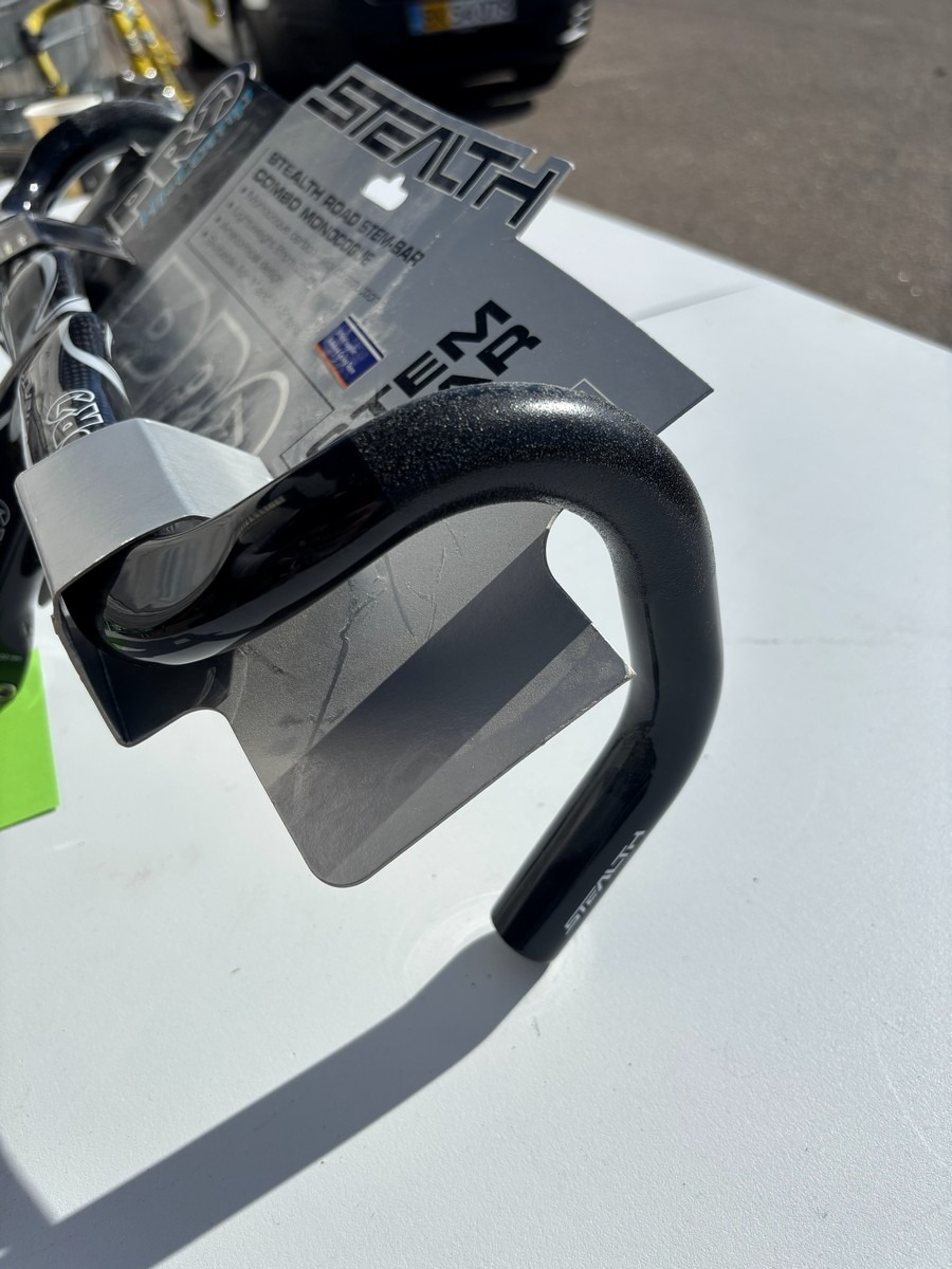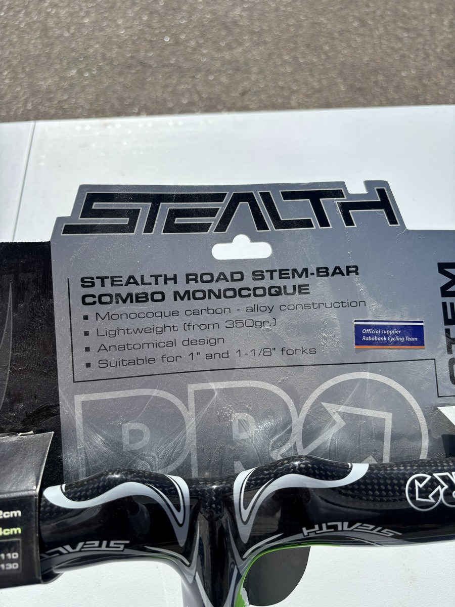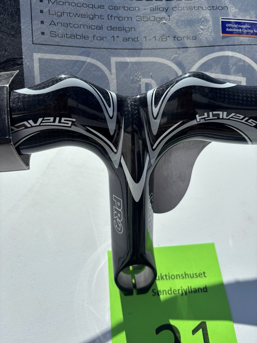 Integreret racerstyr og frempind i PRO Stealth model, udført i monocoque carbon/aluminium konstruktion. Aerodynamisk og ergonomisk design med fokus på lav vægt og vibrationsdæmpning.