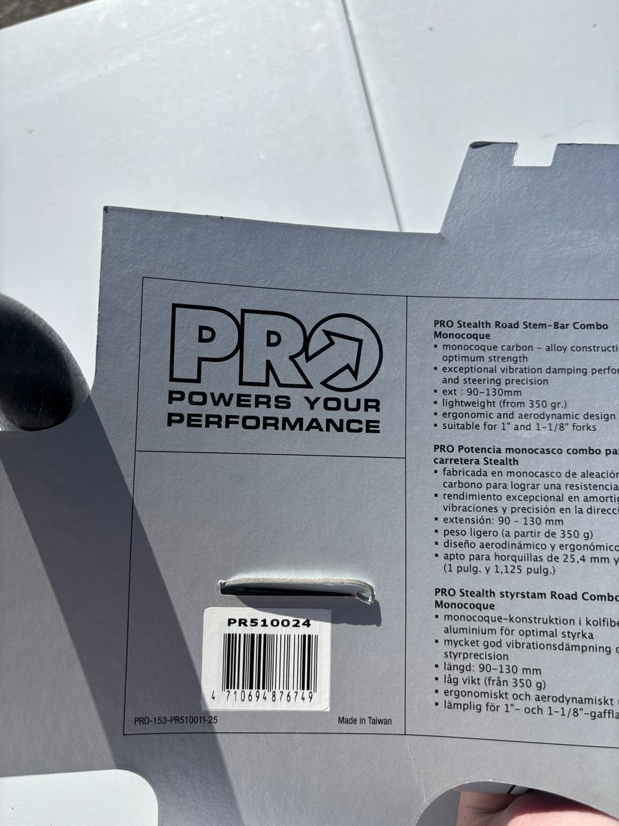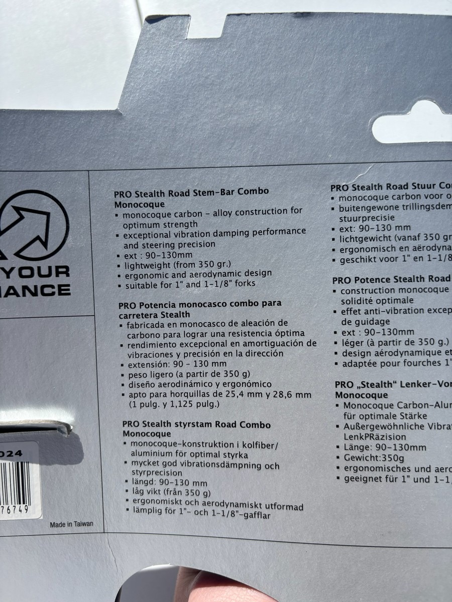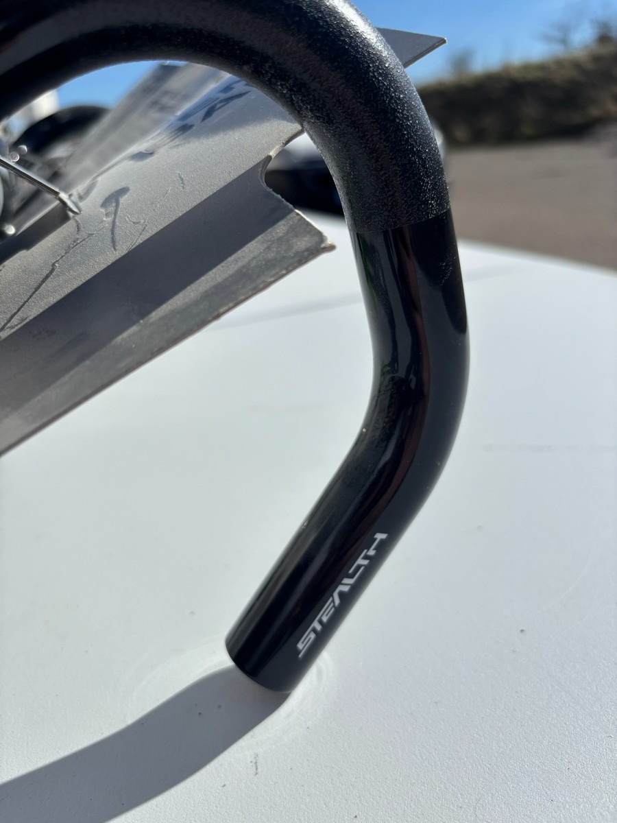 Integreret racerstyr og frempind i PRO Stealth model, udført i monocoque carbon/aluminium konstruktion. Aerodynamisk og ergonomisk design med fokus på lav vægt og vibrationsdæmpning.