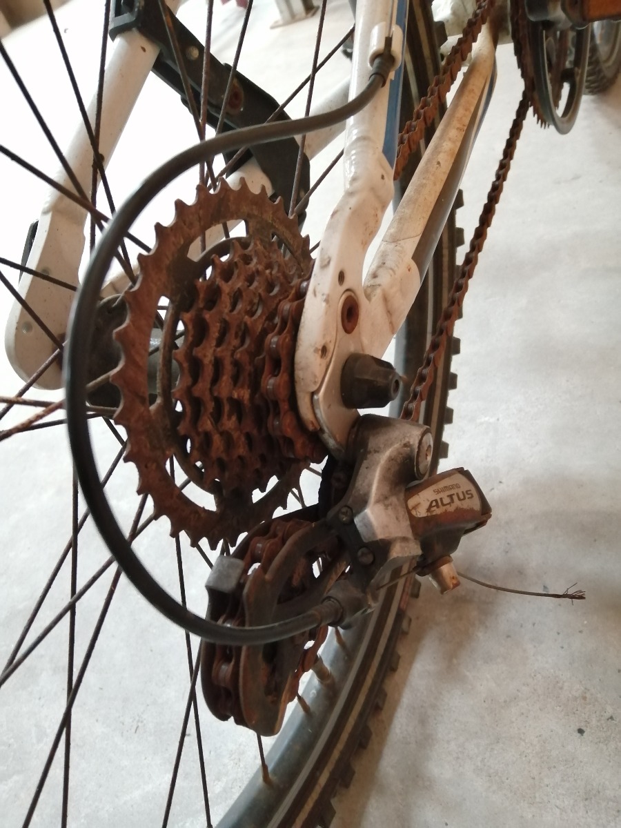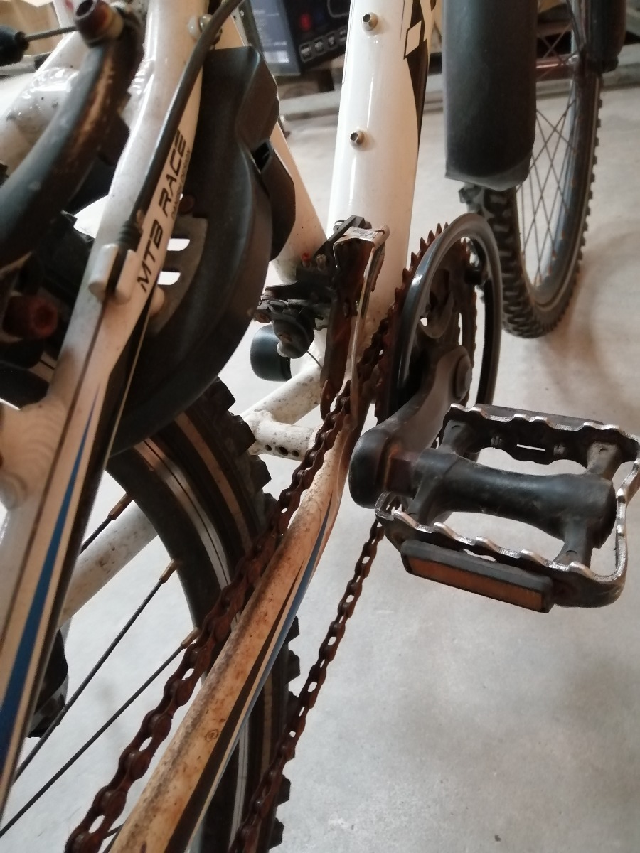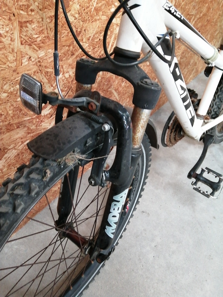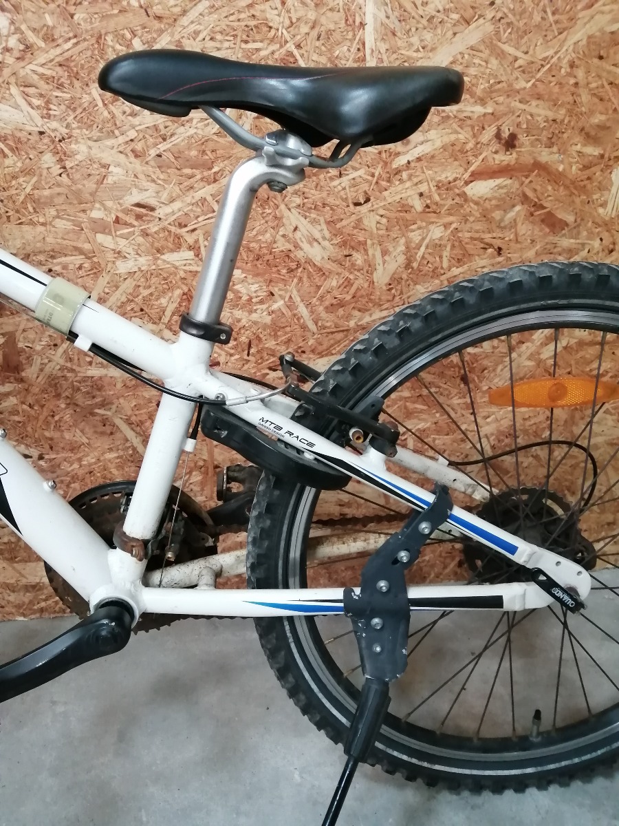 X - zite barnecykel, MTB Race, med udv. gear. 24 tommer. Stelstr. 30 cm. Med støtteben. UDEN nøgle til lås. Den har brugsspor, rust og trænger til et eftersyn. Brugt