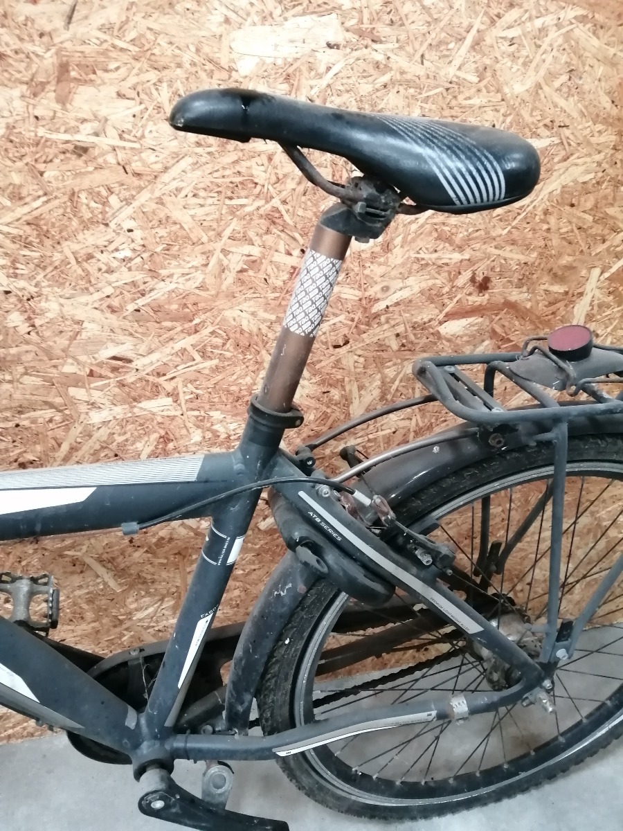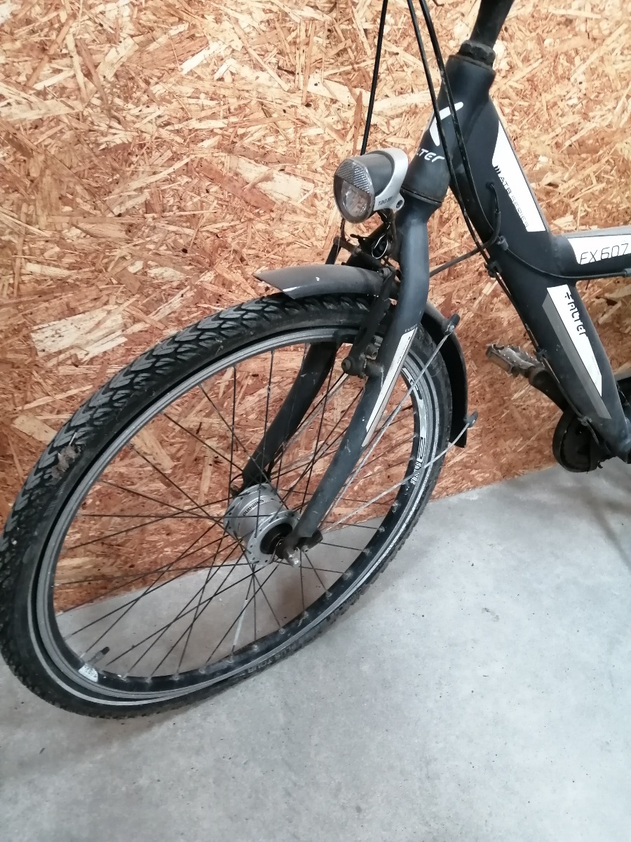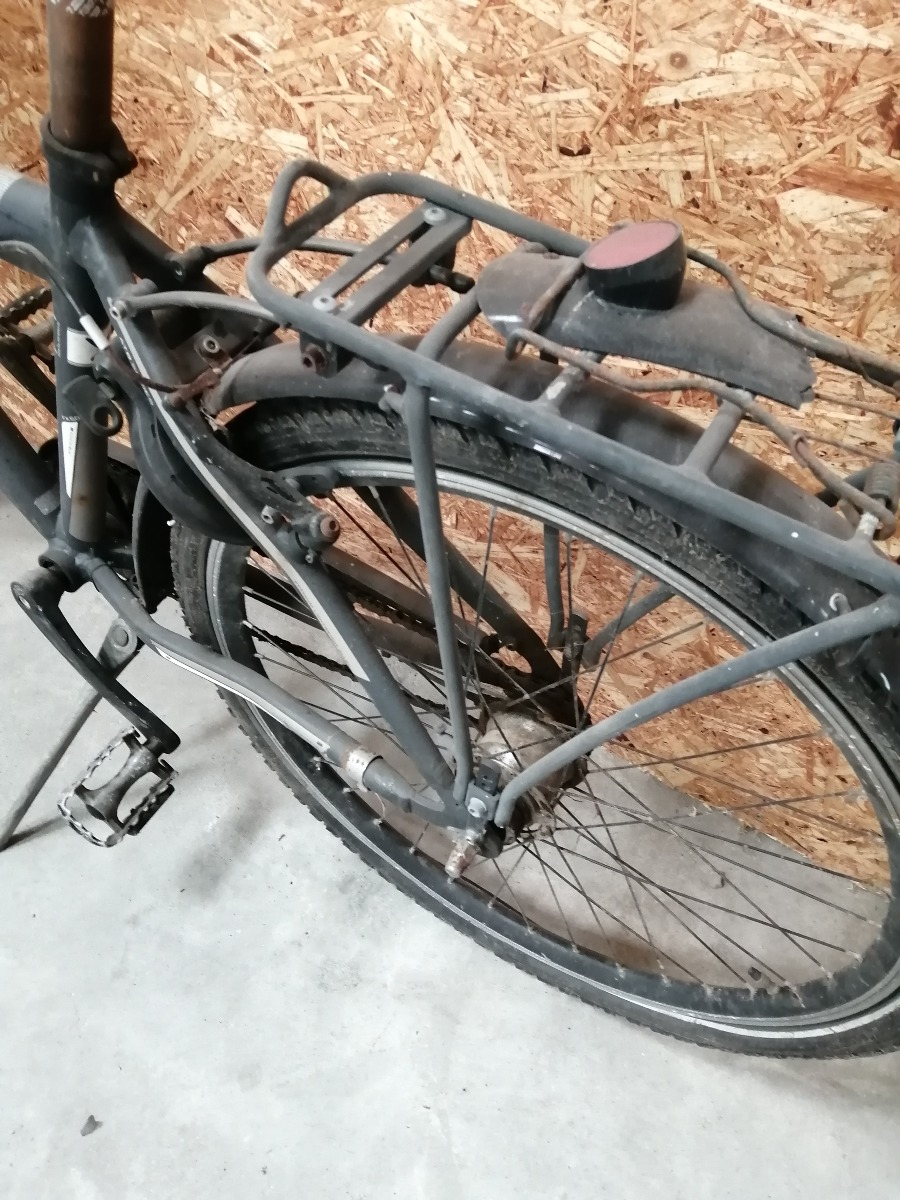 ATB series FX 607 cykel.  Med 7 gear. 26 tommer. Stelstr. 45 cm. Flad på dæk. Den mangler skærm ved gear, bagskærm er knækket. Med støtteben og lys foran. Den har brugsspor, rust og trænger til et eftersyn. Brugt.