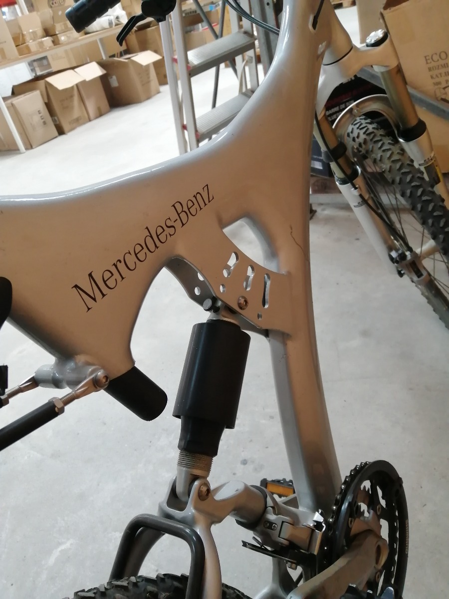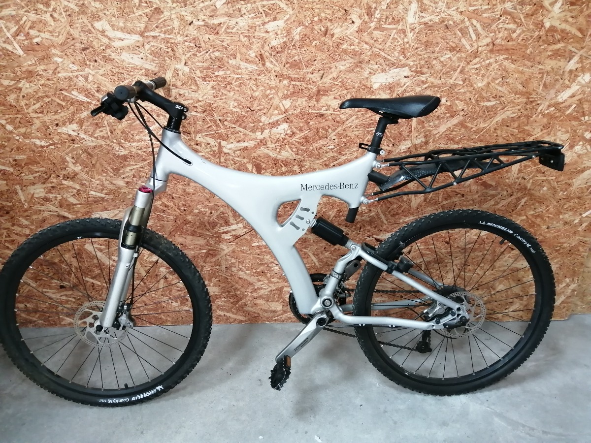 Mercedes-Benz cykel med udv. gear. 26 tommer. Stelstr. 55 cm. Den er UDEN nøgle til lås og uden støtteben. Den har en smule bruggspor, men ellers i pæn stand. Brugt.