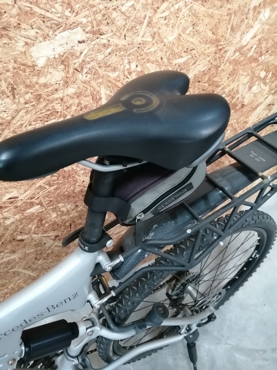 Mercedes-Benz cykel med udv. gear. 26 tommer. Stelstr. 55 cm. Den er UDEN nøgle til lås. Den er med støtteben, sadeltaske, computer, drikkedunkholder. Den har en smule bruggspor, men ellers i pæn stand. Brugt.