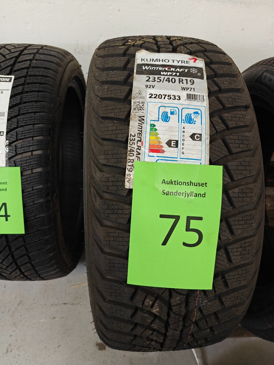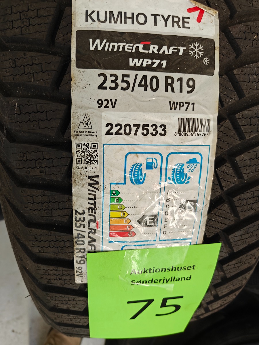 1 stk. Kumho WinterCraft WP71 235/40 R19 92V WP71 vinterdæk. Dækket er ubrugt.