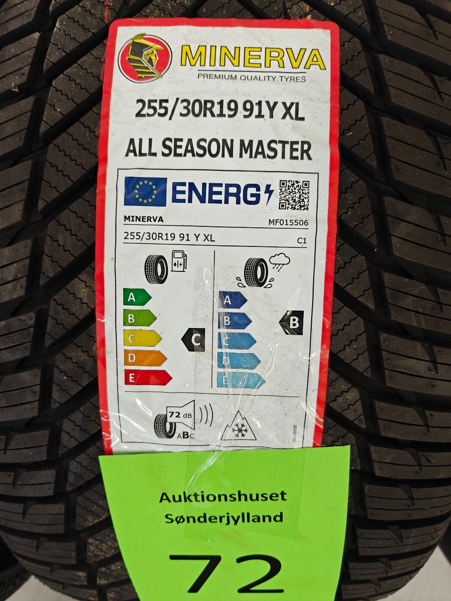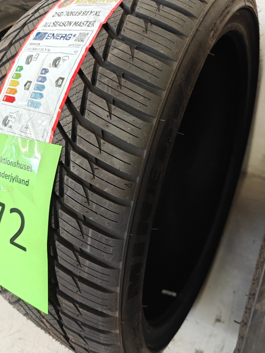 1 stk. Minerva 255/30 R 19 91Y XL helårsdæk. Dækket er ubrugt.