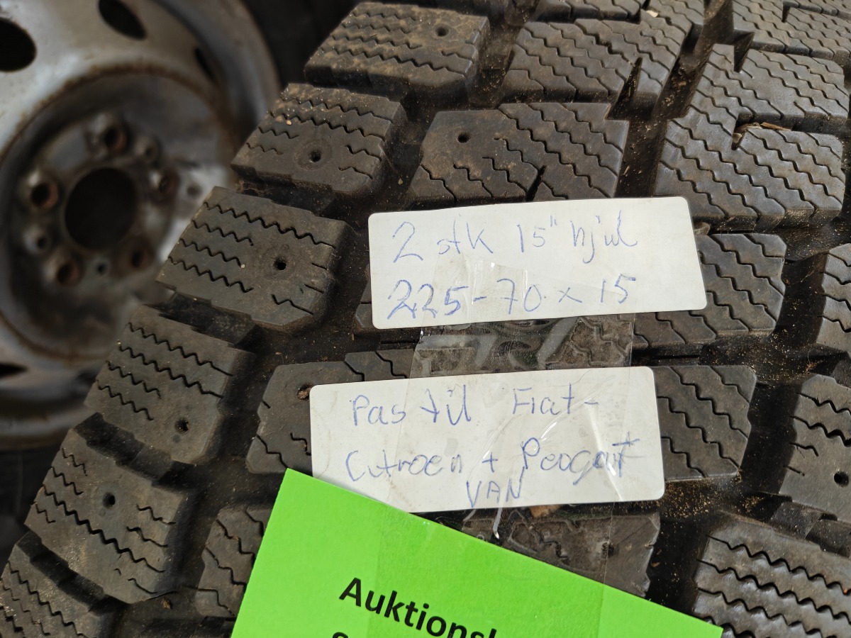 2 stk. 15" stålfælge med 225/70 R 15 vinterdæk. Passer til Fiat, Citroèn og Peugeot Van. Dækkene er brugte.
