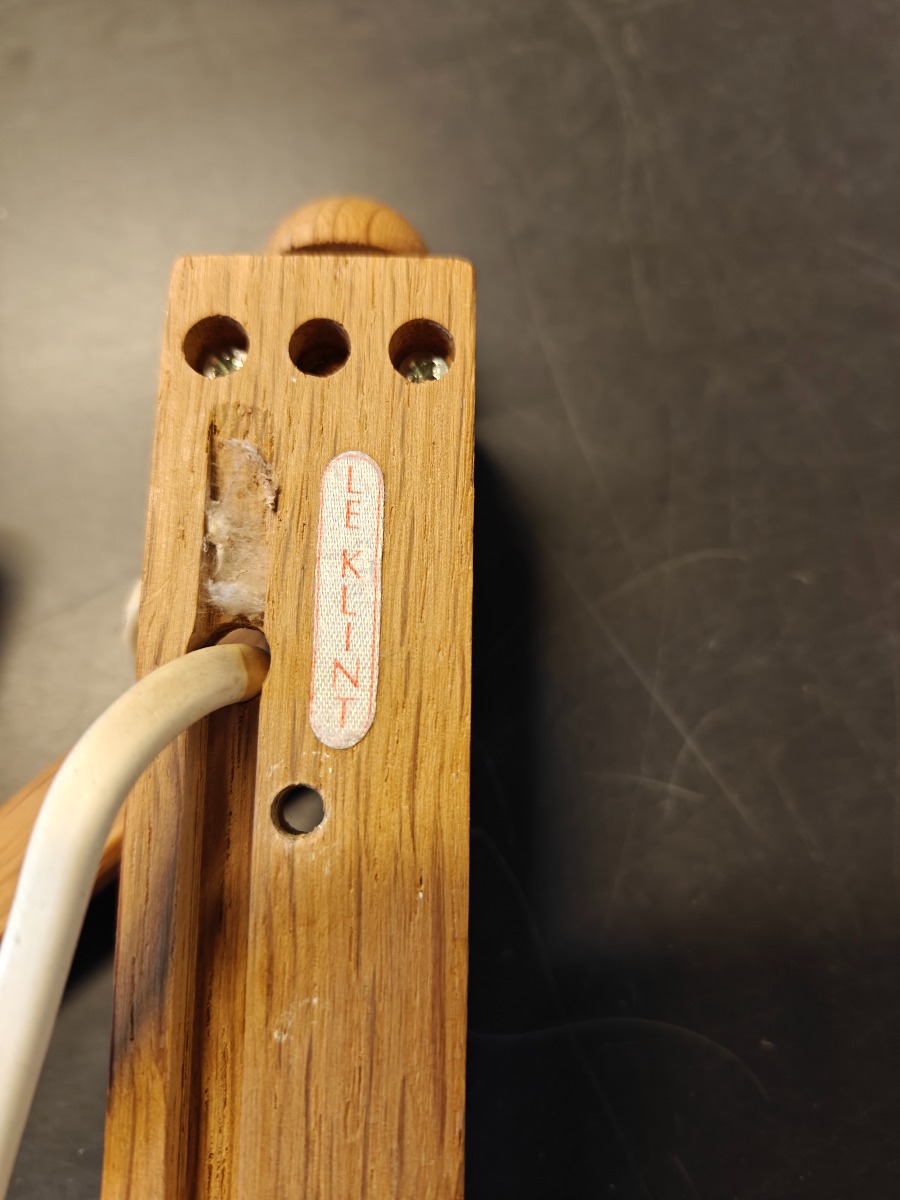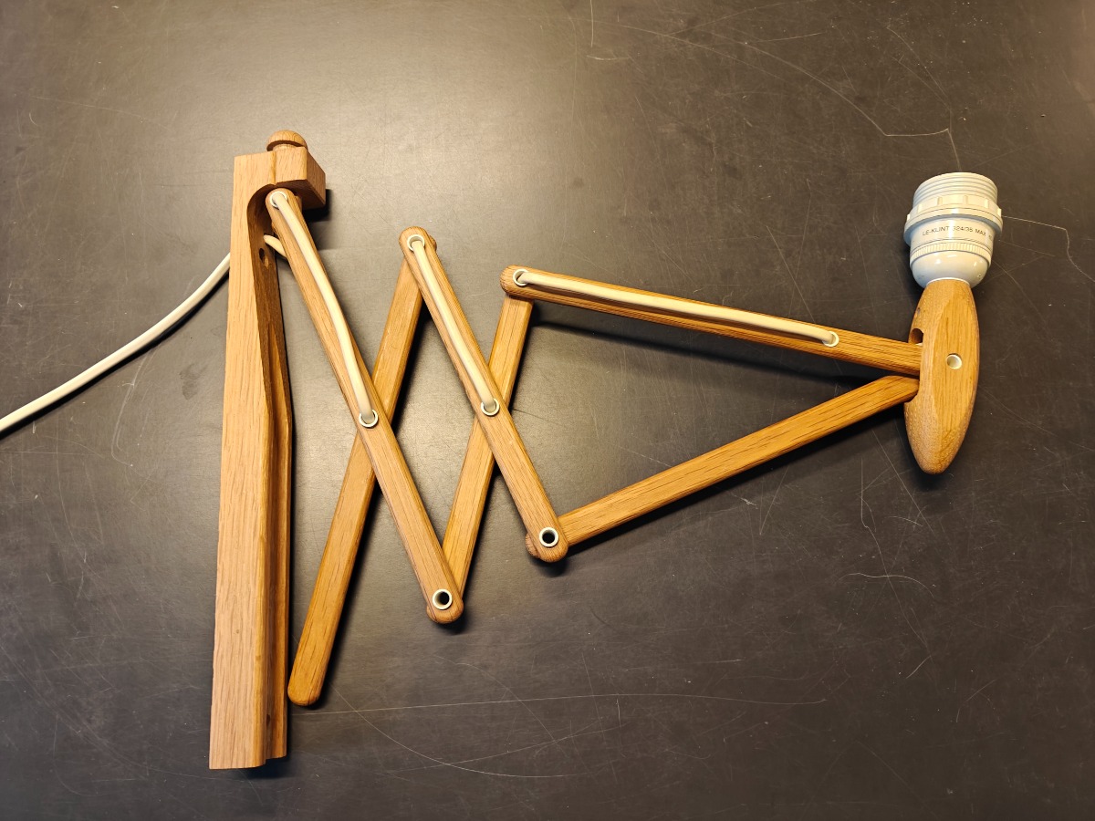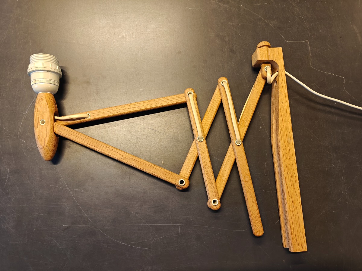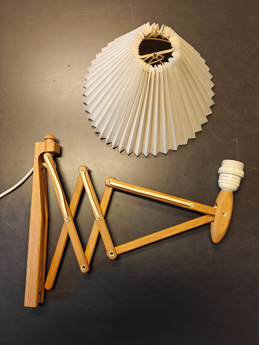 Le Klint Sax lampe af eg. Designet af Erik Hansen. H. 31, L. 33/60 cm.