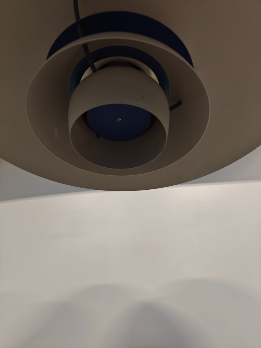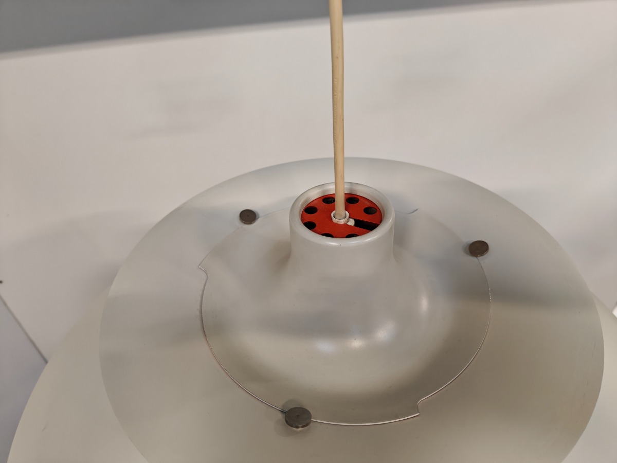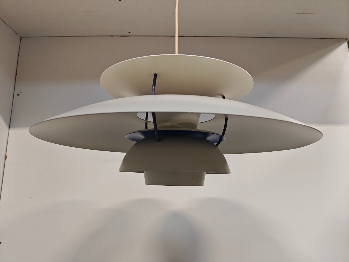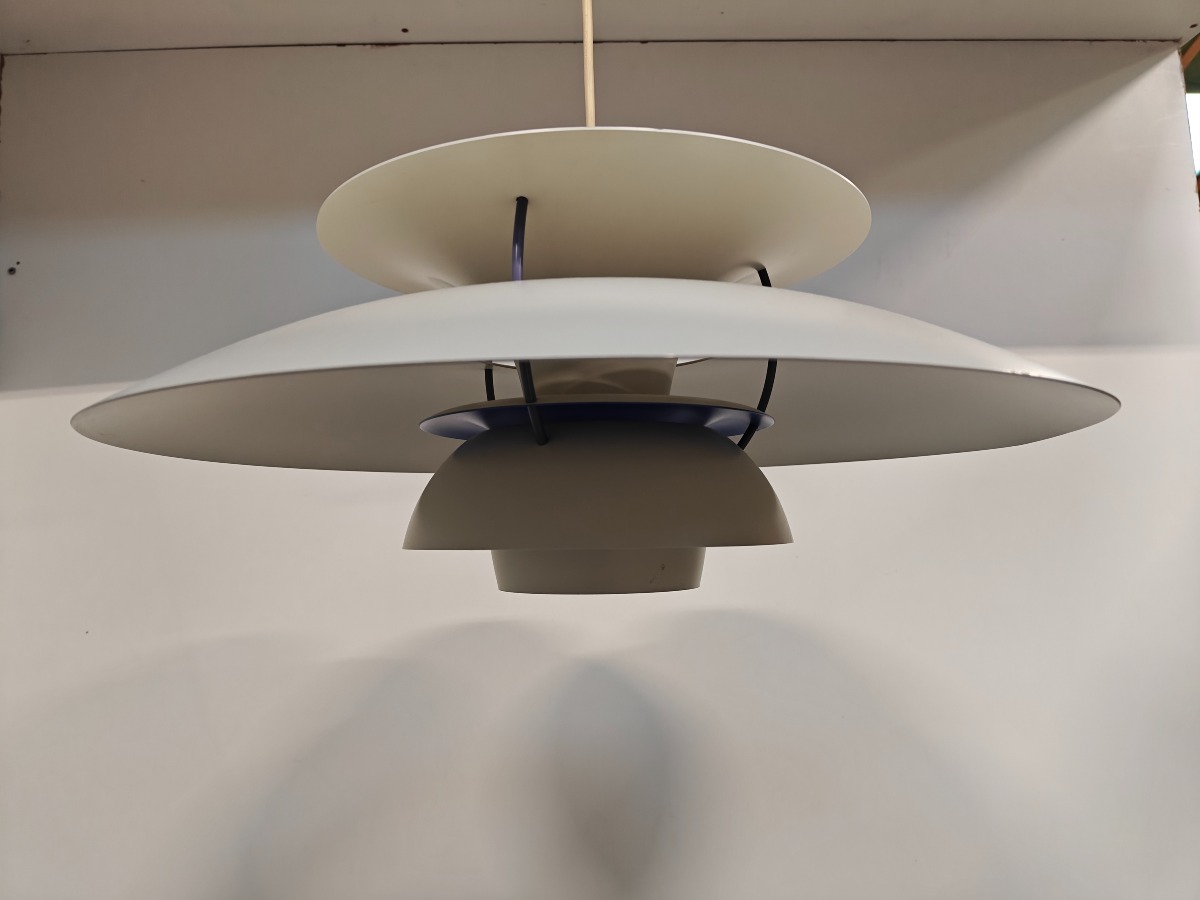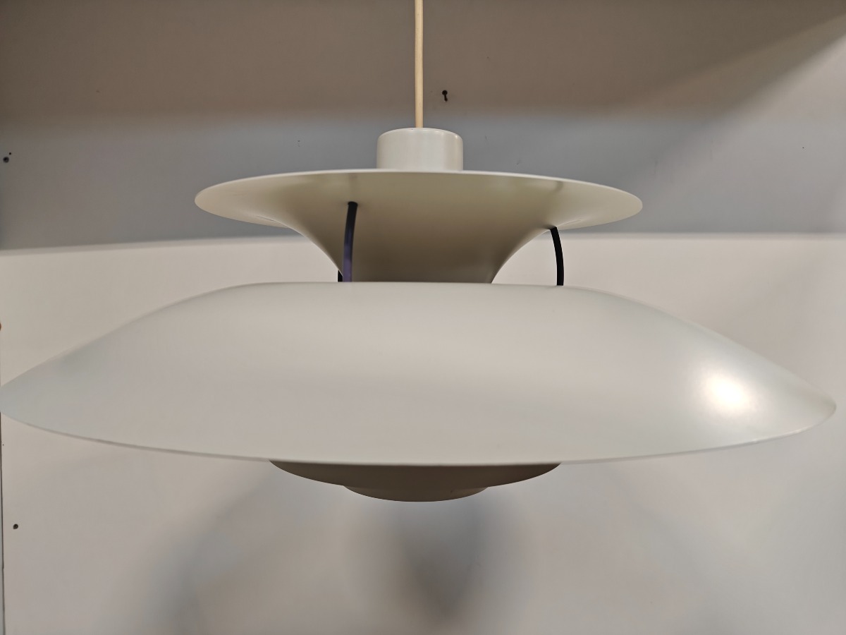 Poul Henningsen PH5 pendel. Skærme af hvidlakeret metal. Ø. 50 cm. Fremstillet hos Louis Poulsen.