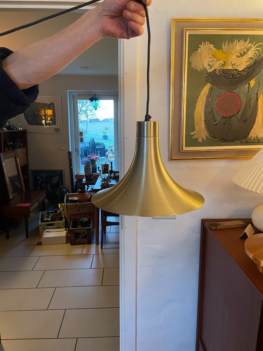 Messing pendel i tragtform. 3 Ø: ca 28cm H: ca 18 cm