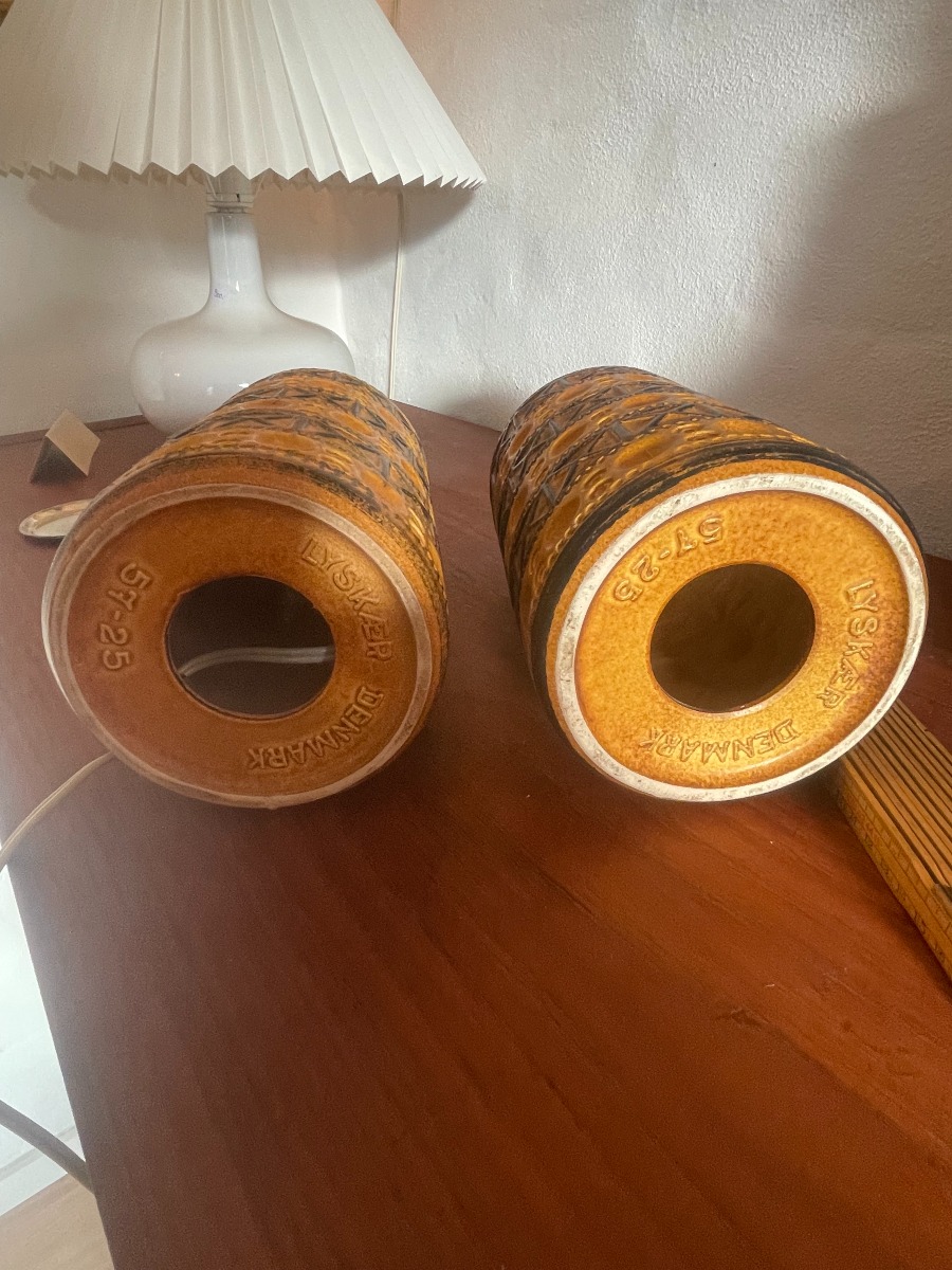 2 danske lampefødder fra Lyskær. Model 57-25. Begge skal have monteret fatninger. Den ene skal have trukket ledning.