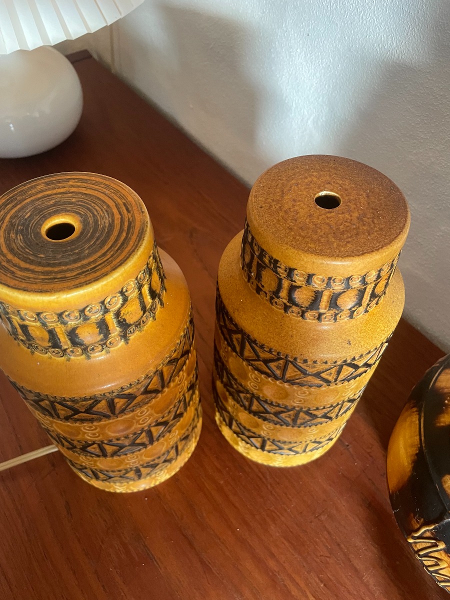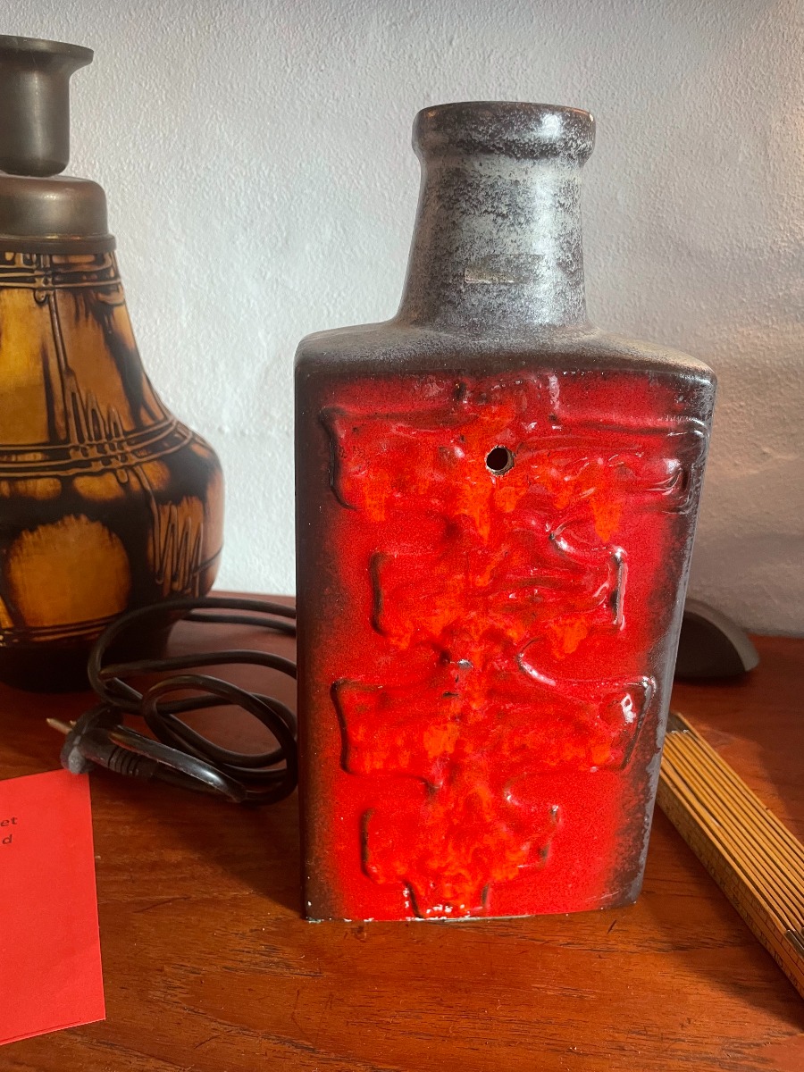 West Germany brun/rød model 281-30. Vase klargjort til ledning. Brugsslid og afskalling.