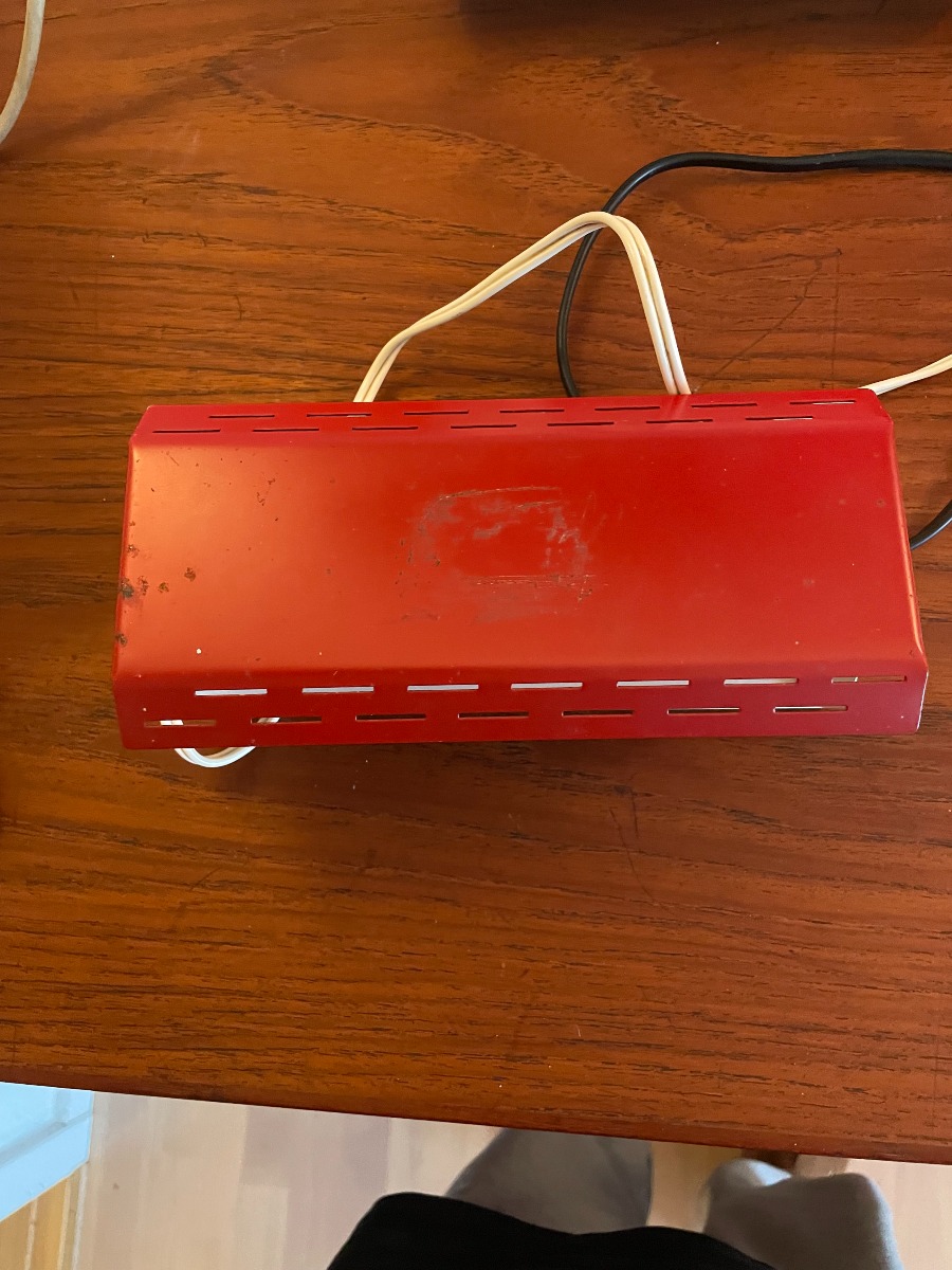 4 vintage natlamper. Hvid ukendt, creme LB (L8?), grøn Hamalux, rød Knud Christensen. Alle lampene har patina i forskellig grad.